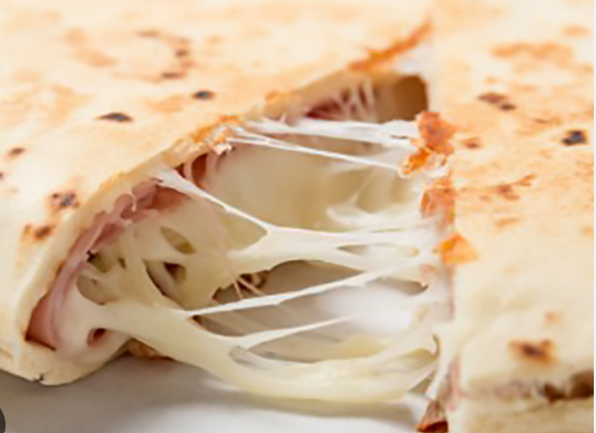 Tortilla con jamón, quesillo y queso amarillo.