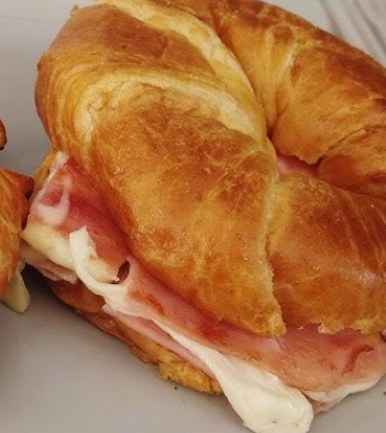Cuernito con jamón, quesillo y queso amarillo.
