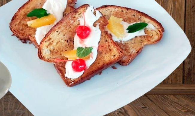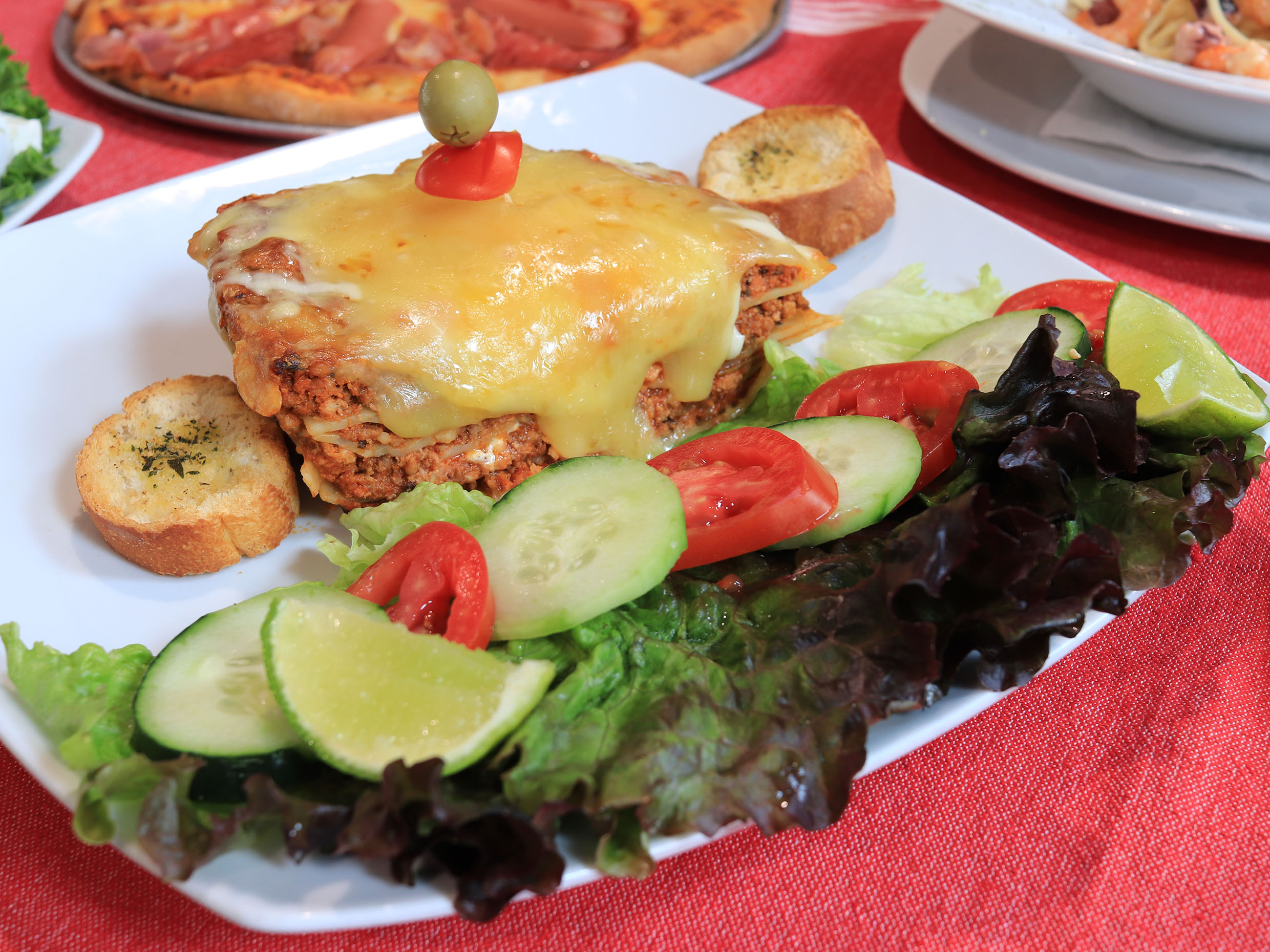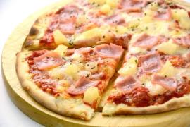 Queso manchego, jamón, piña y salami servido con papas a la francesa.