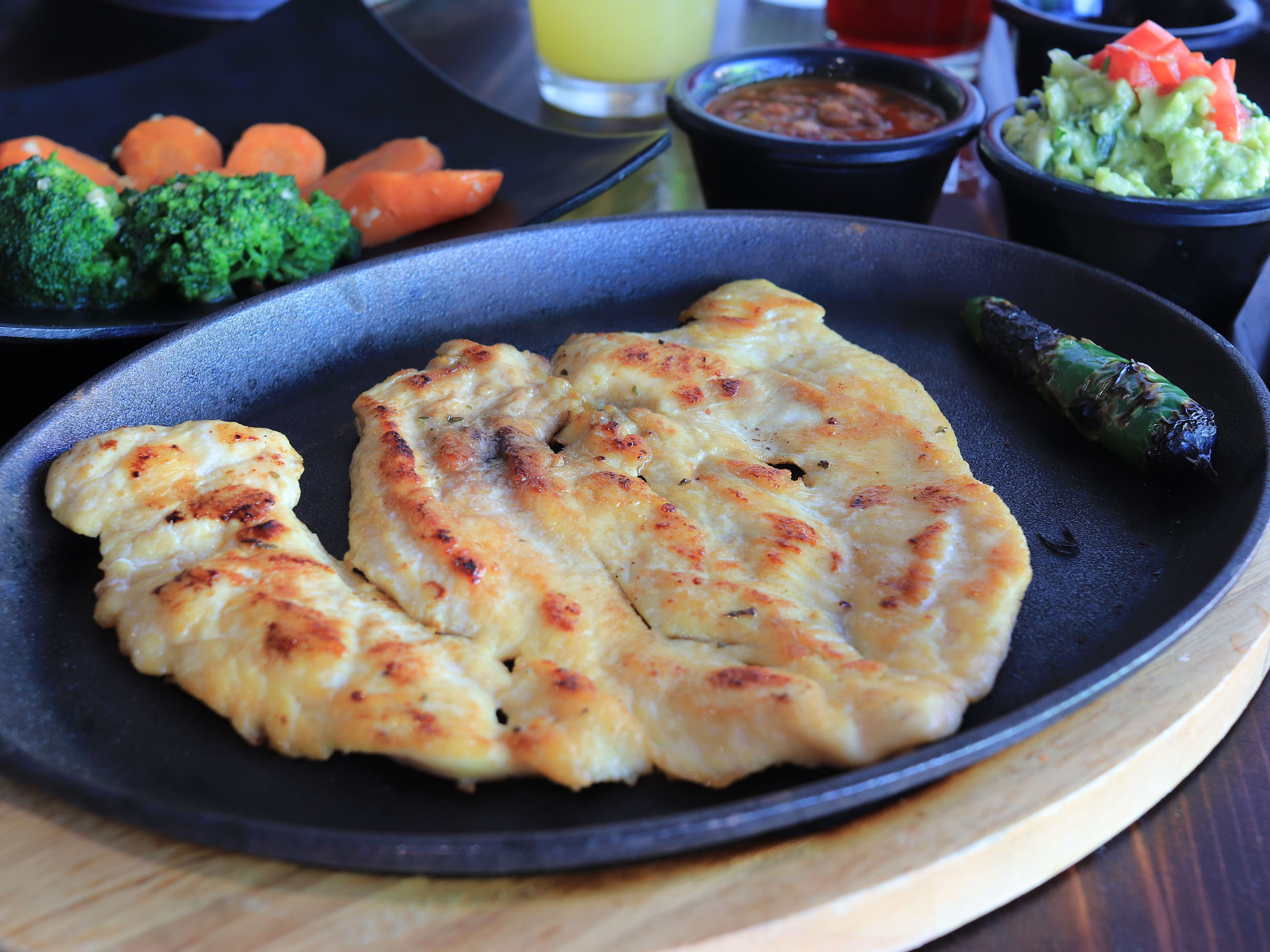 Lechuga, espinaca, zanahoria rayada, pechuga parmesana.