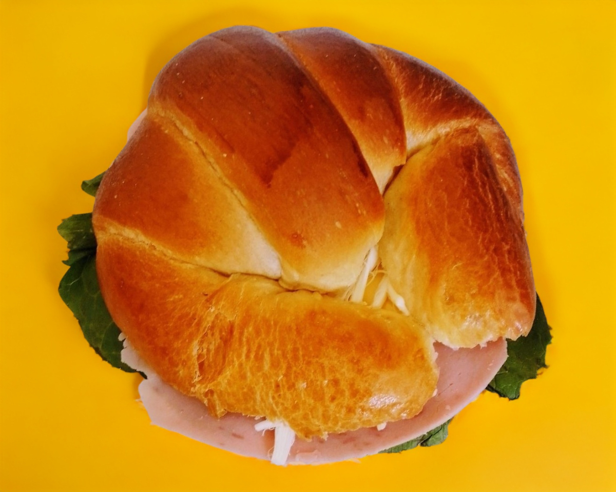 Delicioso bigote relleno de queso manchego, jamon y queso amarillo.