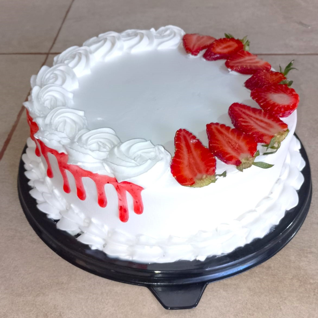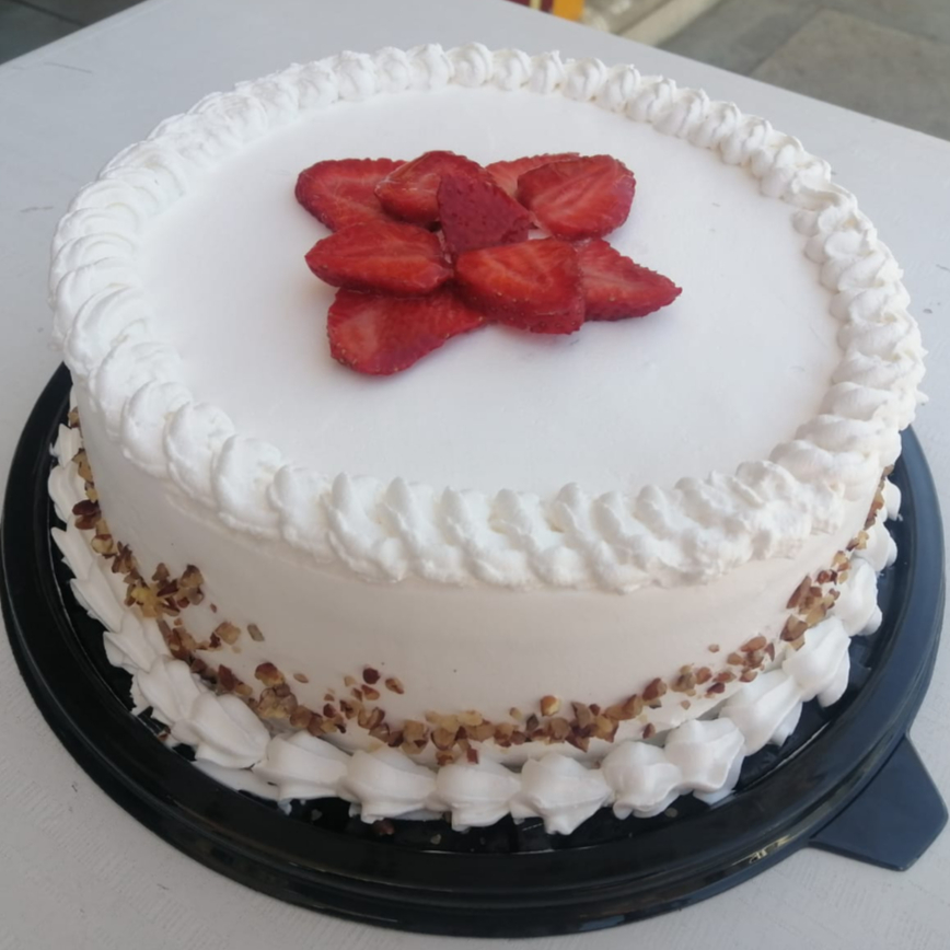 Pastel bañado en 3 leches relleno de fresa. (Aprox. 10 pesonas)