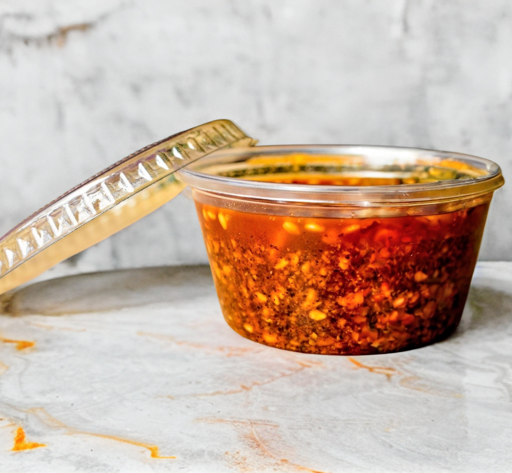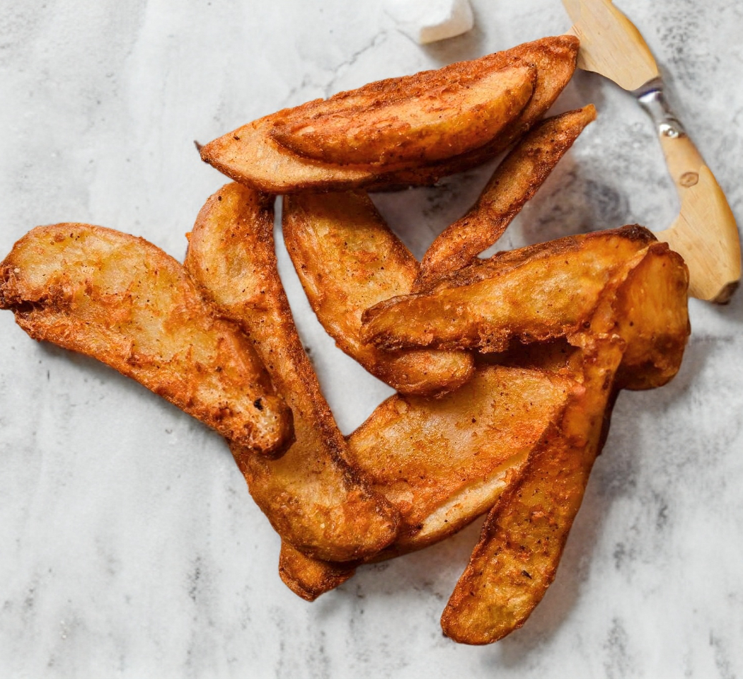 Carne de pollo marinada en salsa búfalo, queso manchego, tomate, cebolla, guacamole e inluye guarnición de chicharrines.
