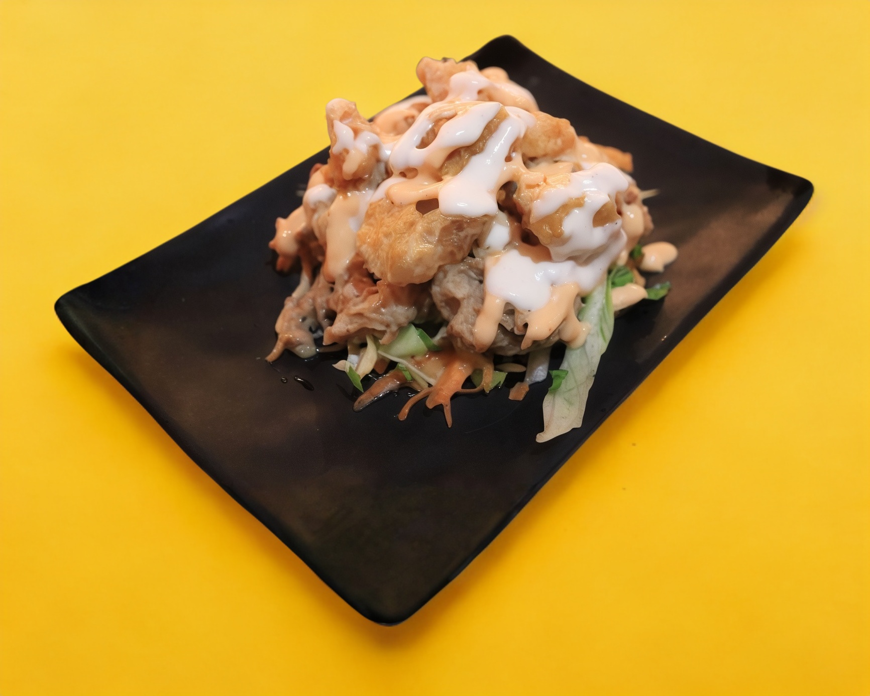 Tostadita crujiente con queso gratinado, ensalada, la carne de tu preferencia (1 a elegir), aderezo de chipotle y ranch.