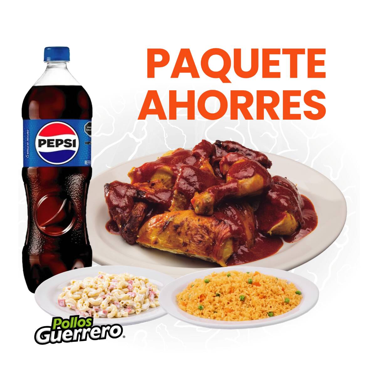 1 Pollo Ranchero Adobado + sabor a elegir + 1 guarnición a elegir de 350 g + 1 refresco familiar