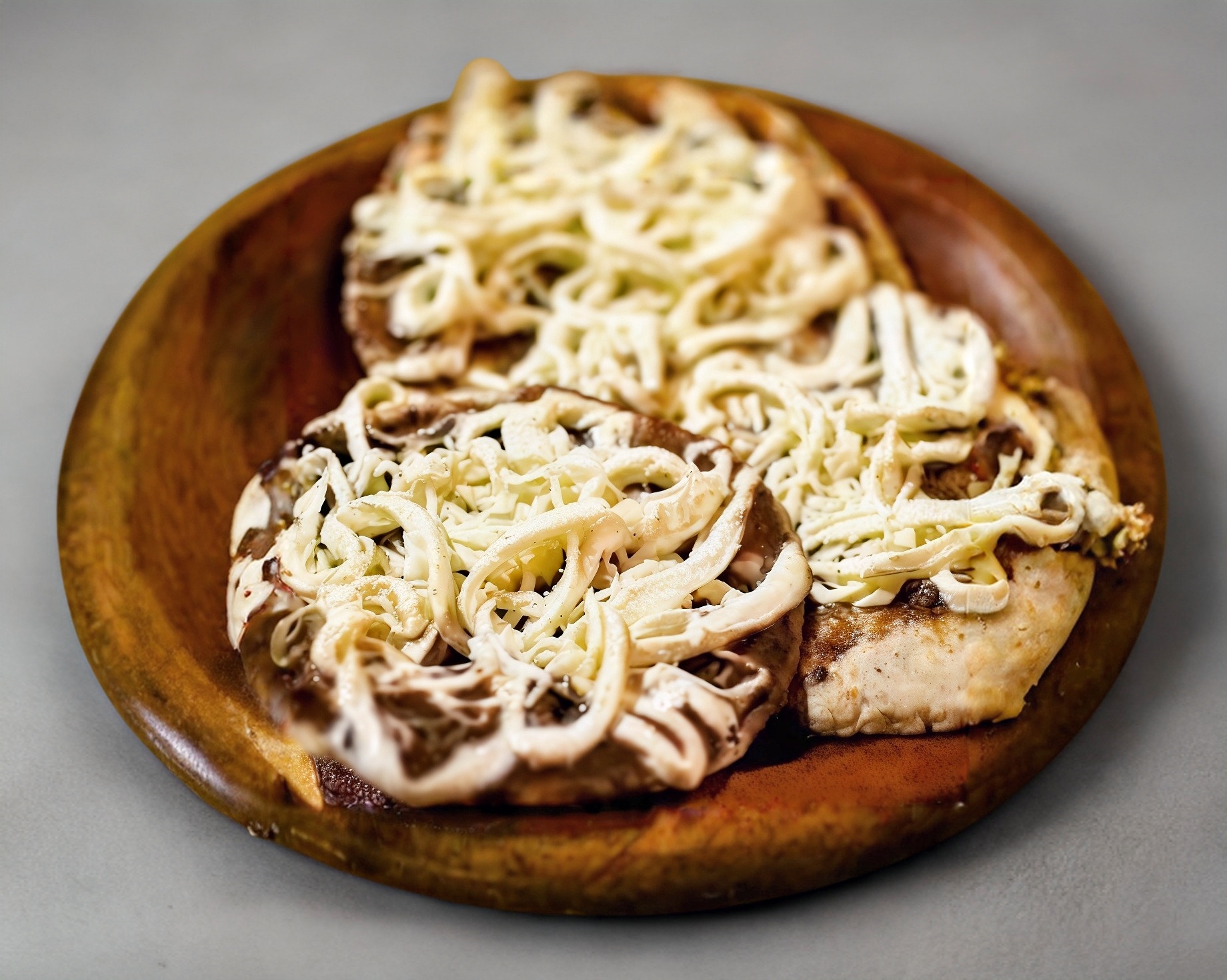 3 Quesadillas fritas de pollo o quesillo con spaguetti.