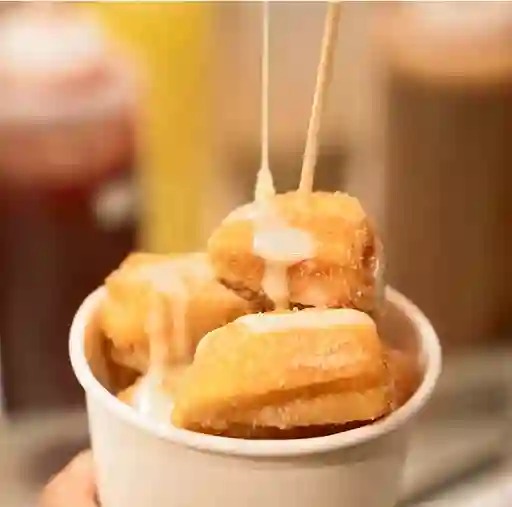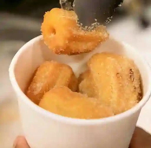 8 Churros en tamaño mini acompañados del topping de sabor a elegir.