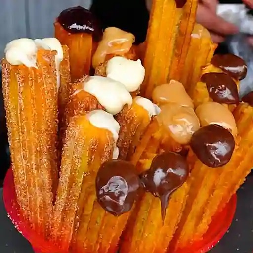 8 Churros en tamaño mini acompañados del topping de sabor a elegir.