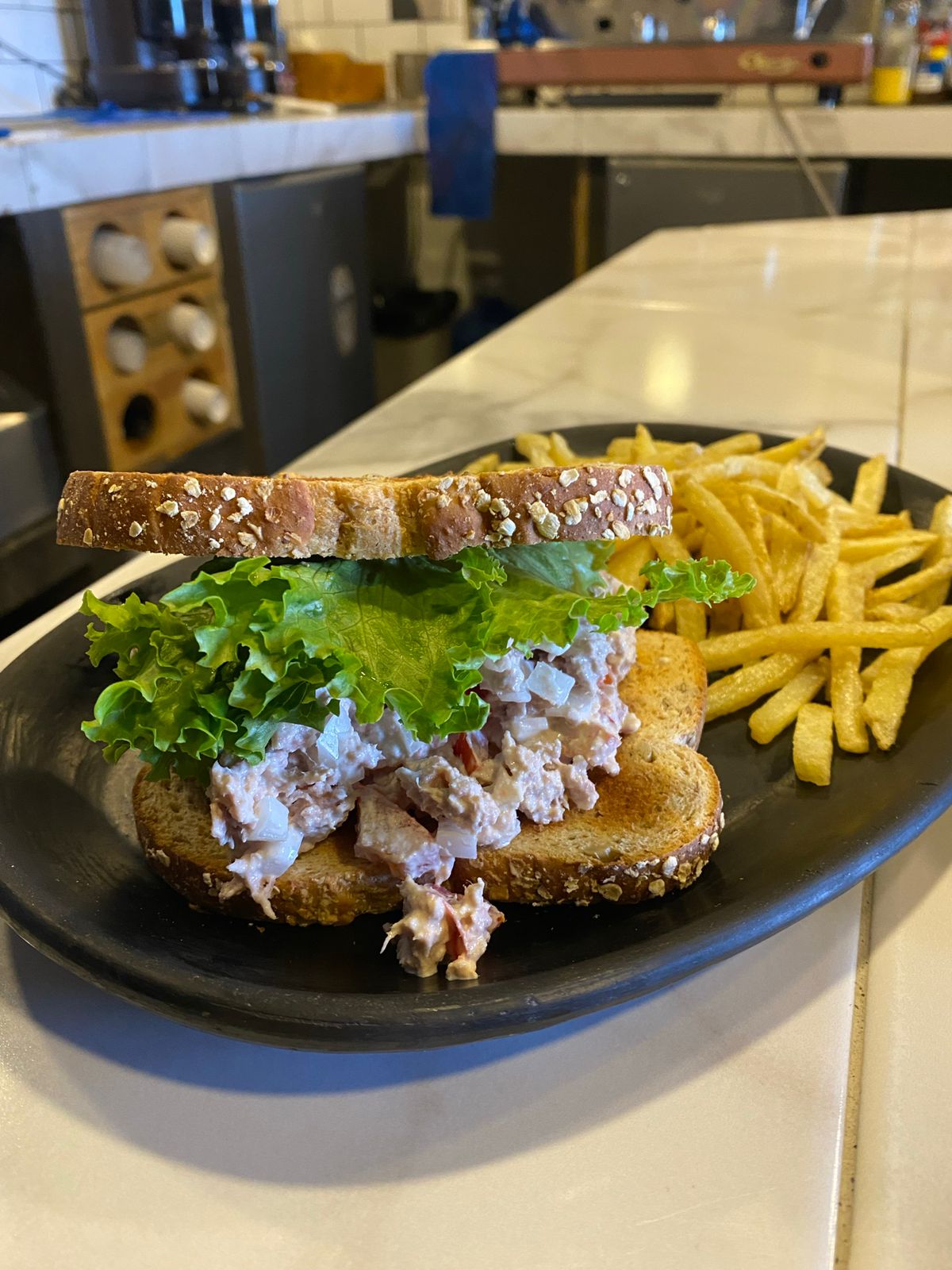 Atún, mayonesa, lechuga y tomate. Guarnicion