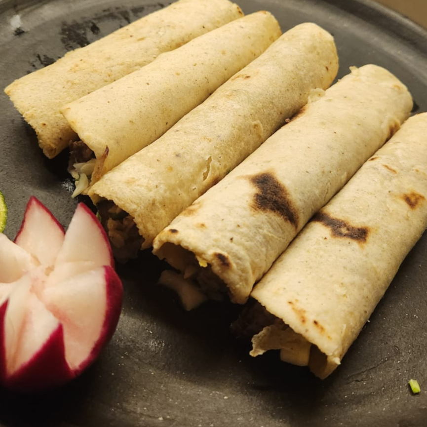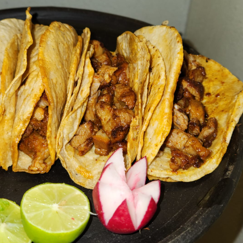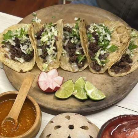 ORDEN DE 5 TACOS DE TASAJO ACOMPAÑADOS DE SALSA, GUACAMOLE, VERDURA Y LIMON