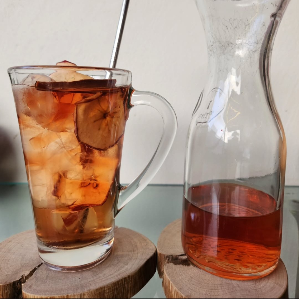 Té natural frio de canela con manzana.