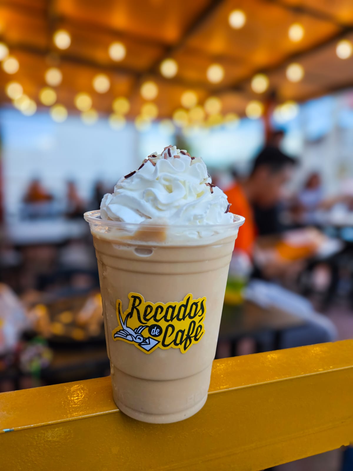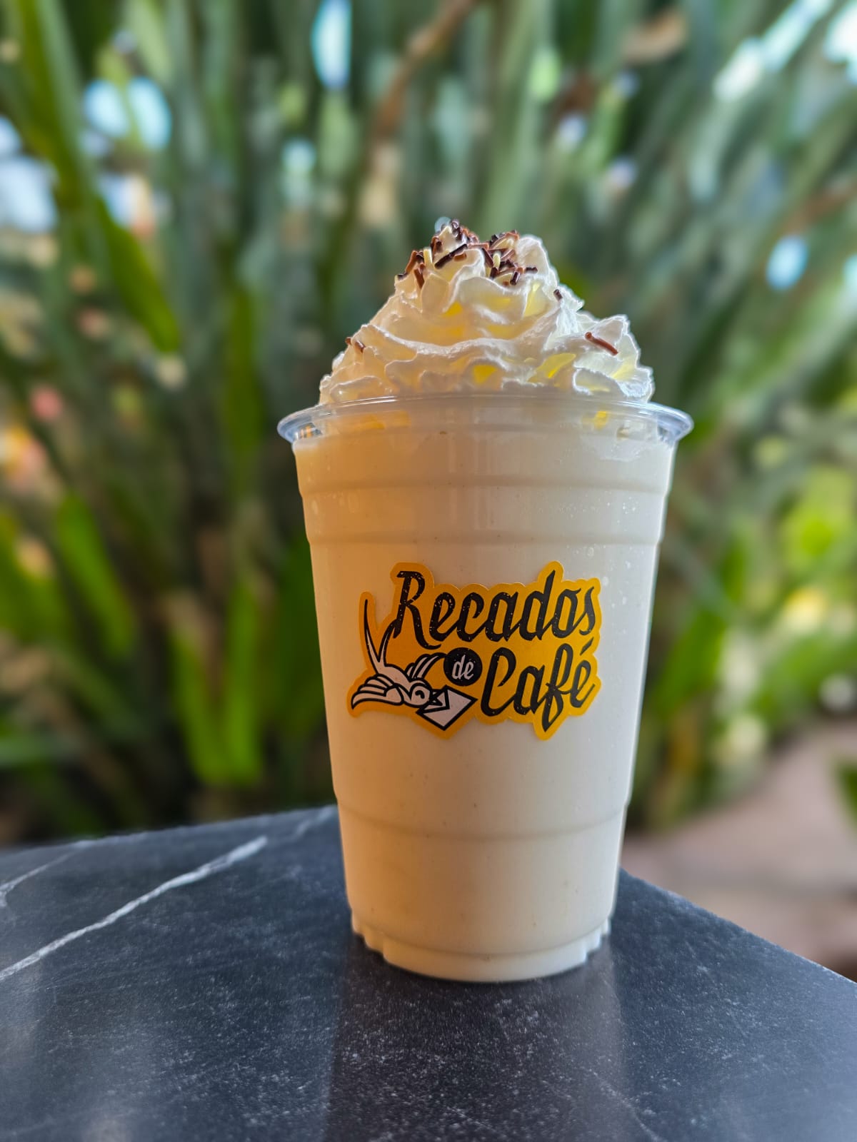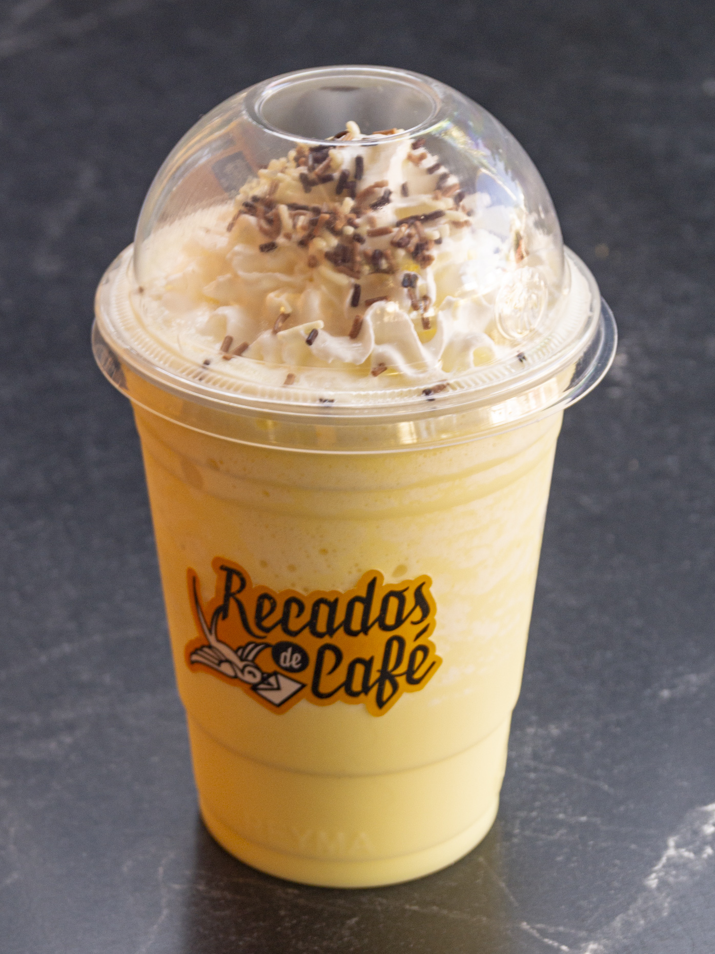 Frappé sabor chocolate blanco con mango. No lleva café.