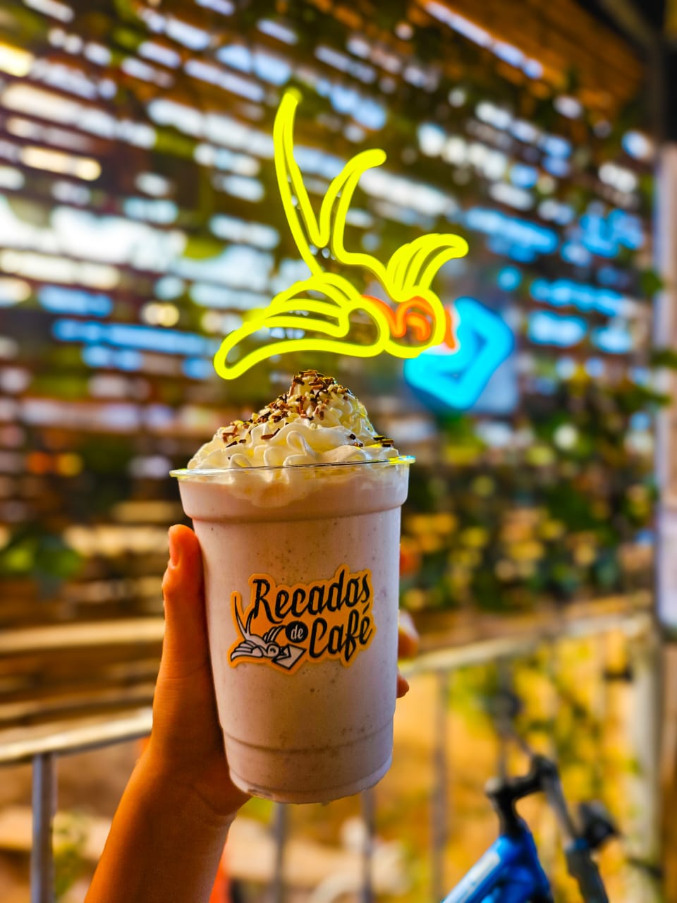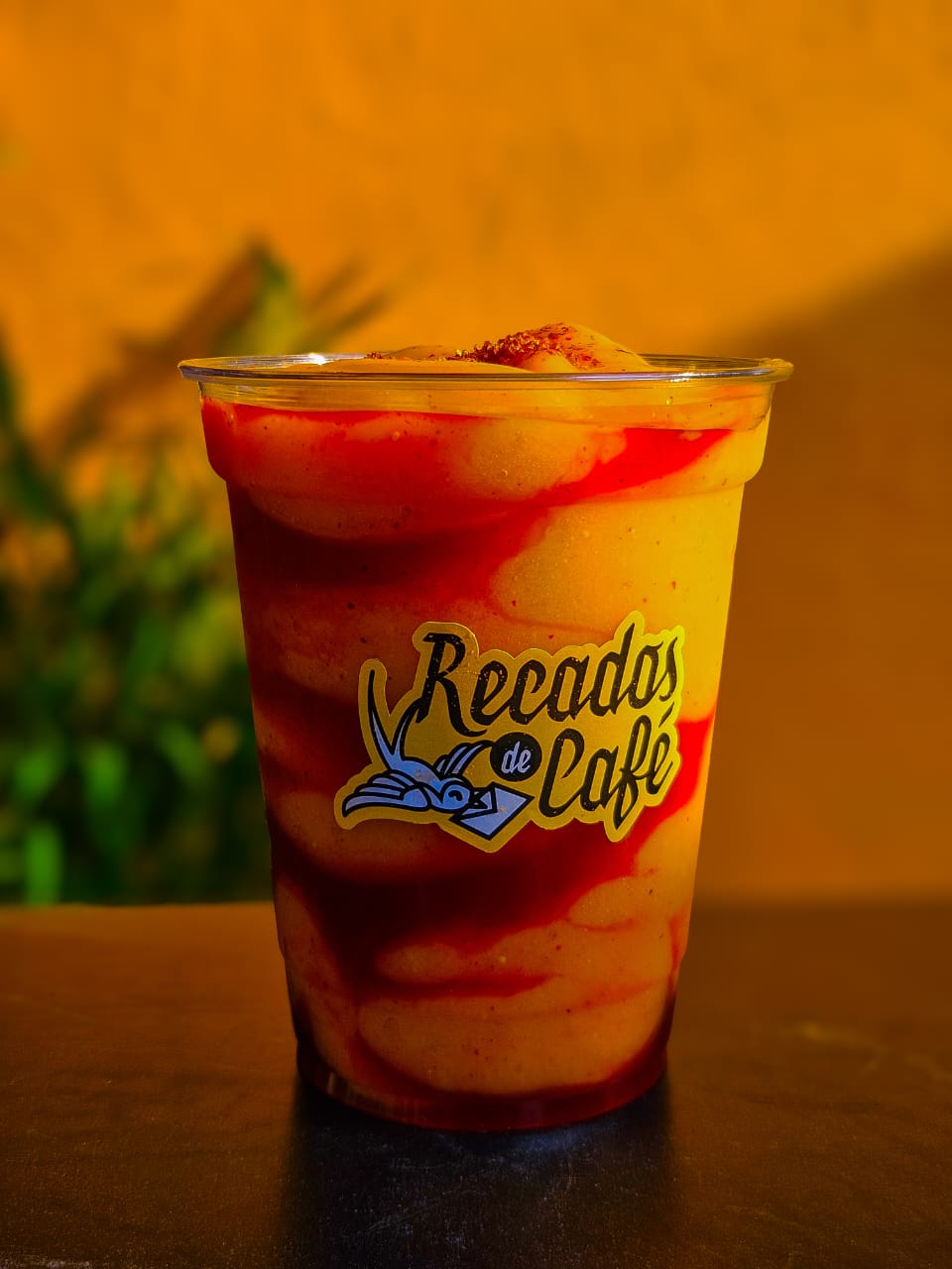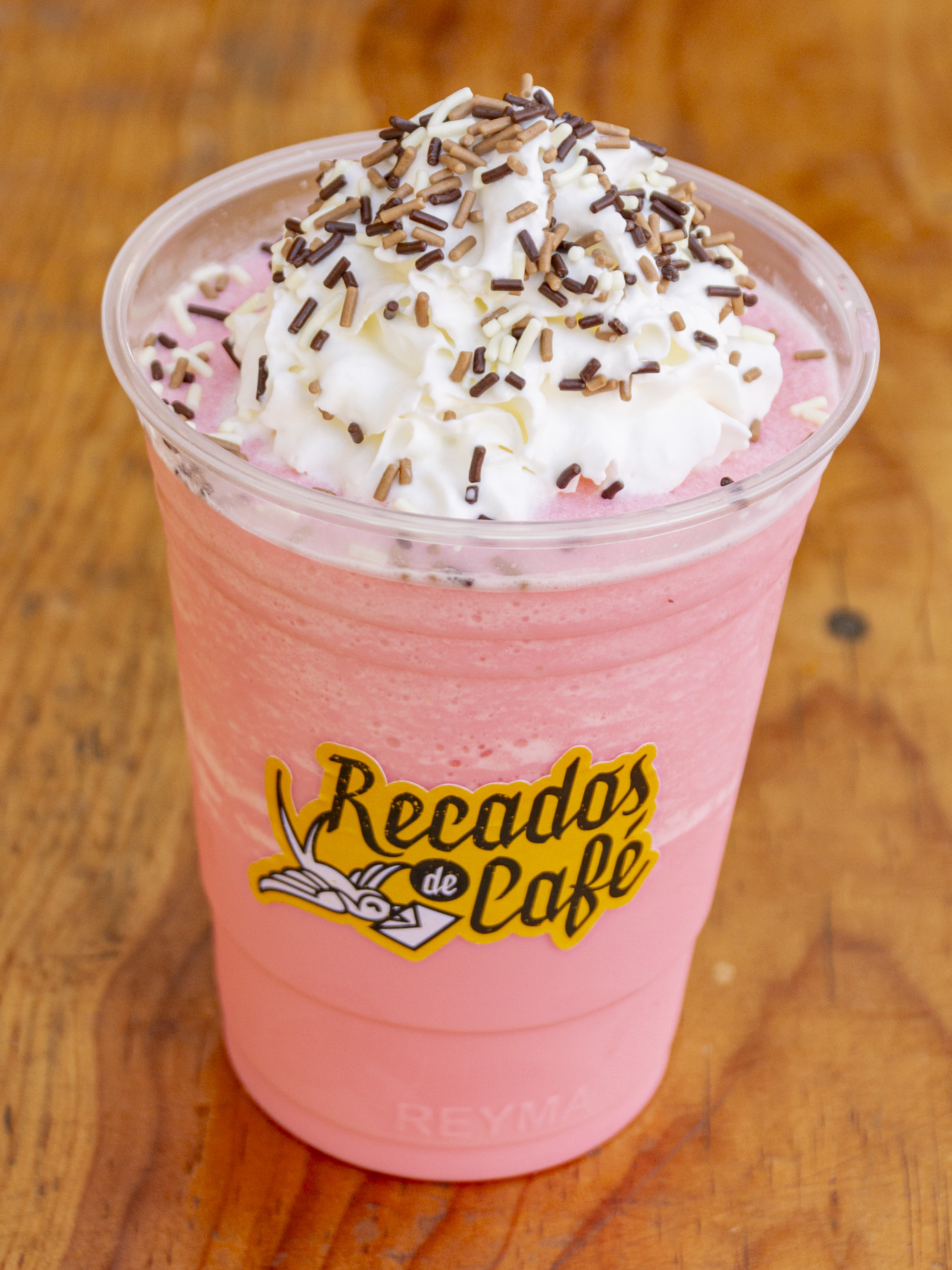 Frappé sabor chocolate blanco con mango. No lleva café.