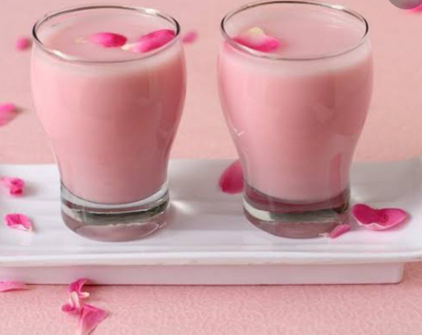 Elaborado con sirope de rosa, miel, almendras y cardamomo mezclado con leche.