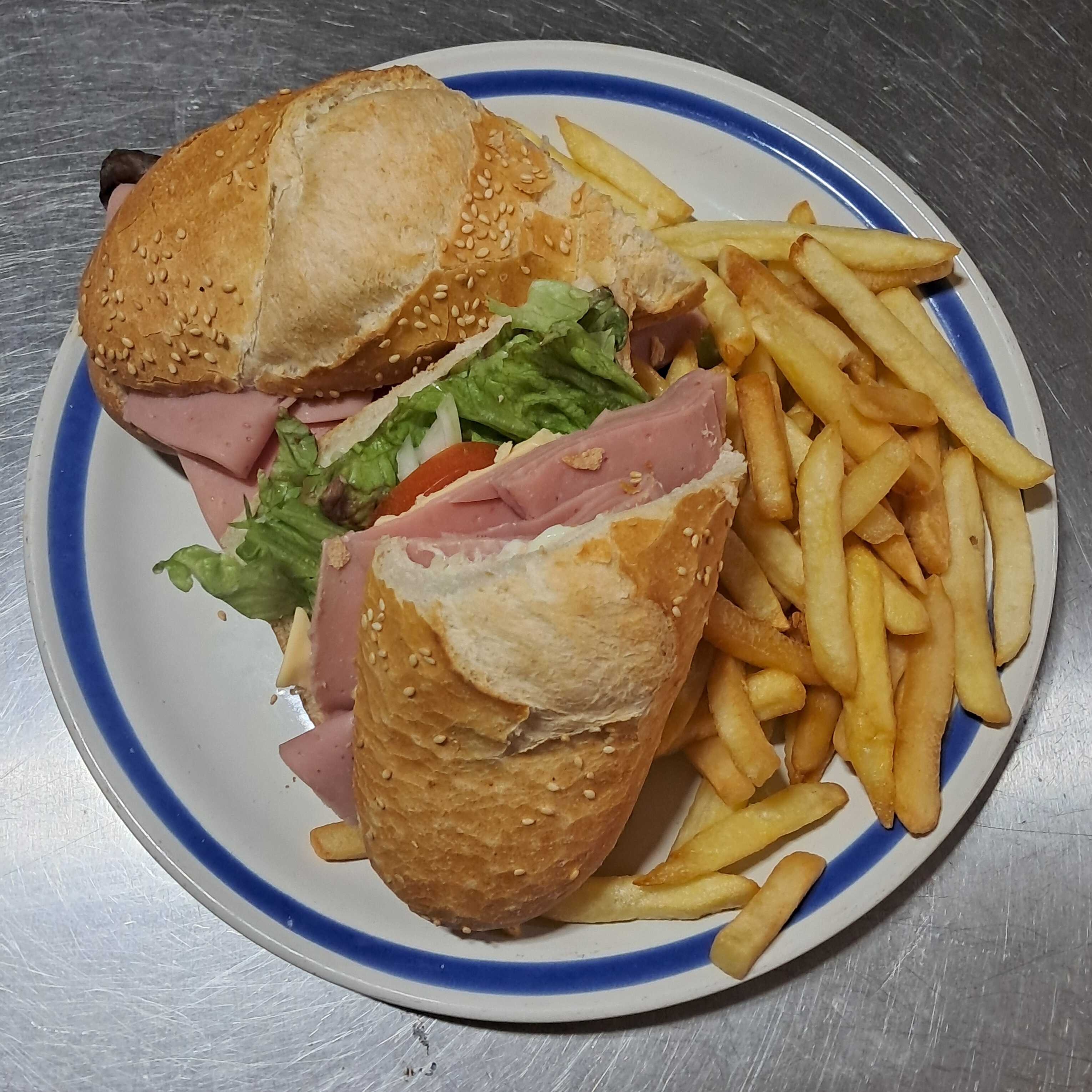 BAGUET JAMON DE PAVO CON PAPAS FRITAS Y AGUA DIA
