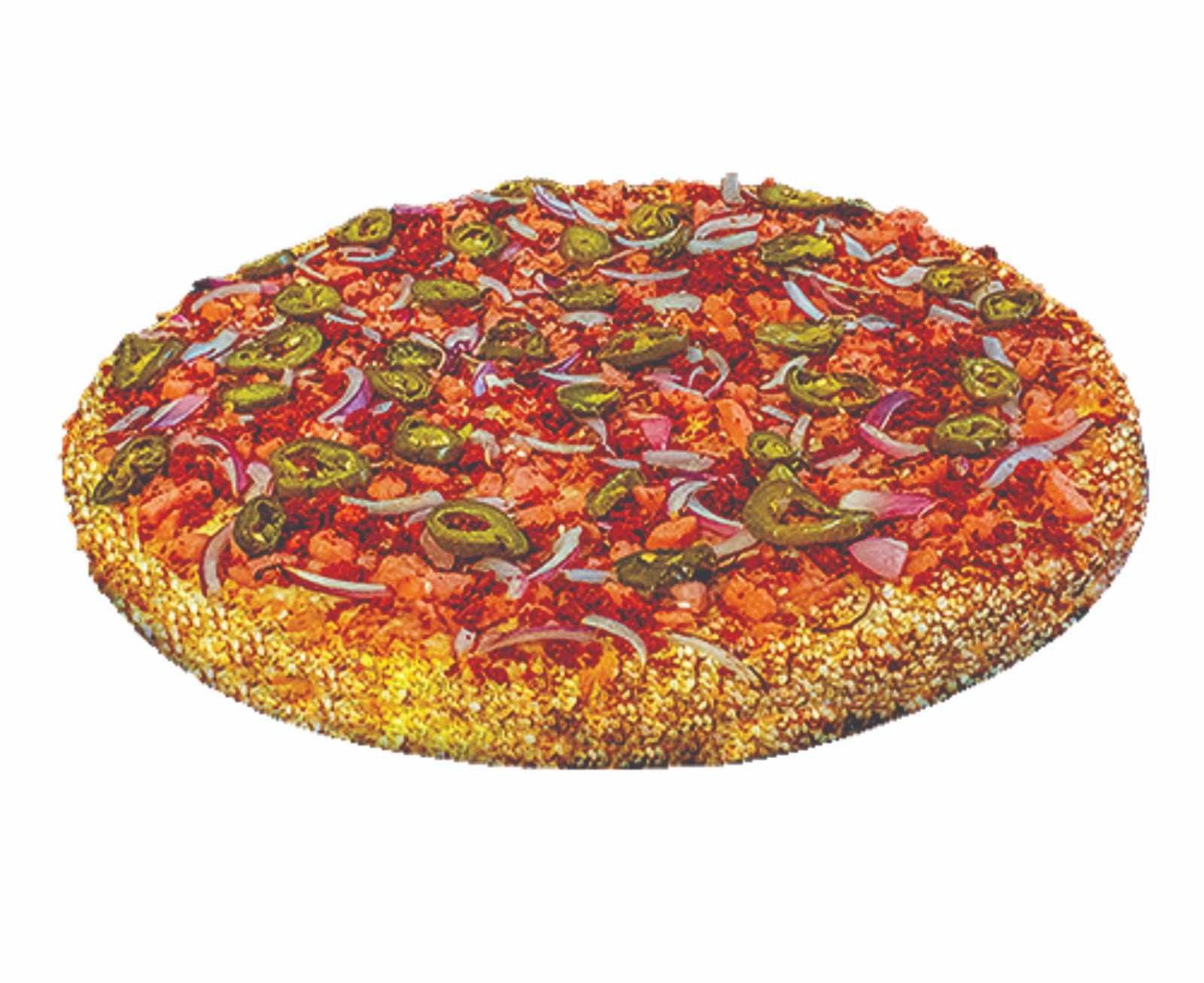 Pepperoni, salchicha, cebolla morada, chipotle.