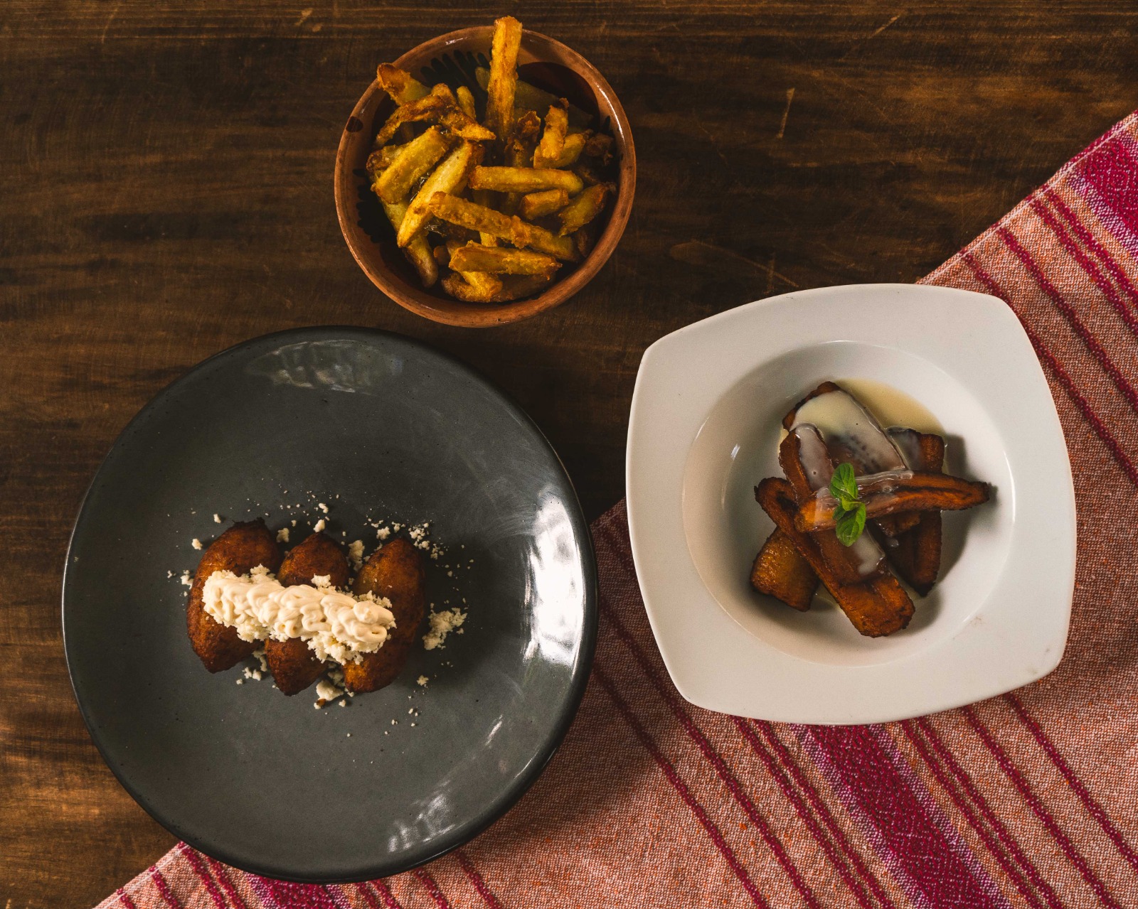 3 piezas de huarachitos con Tasajo frito y cebolla, preparados con asiento, frijol y quesillo.