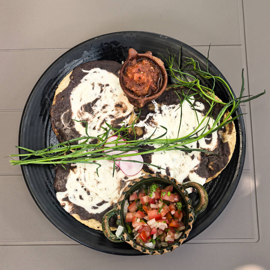3 pz de memela de maiz cubierto de asiento, frijol, quesillo derretido.