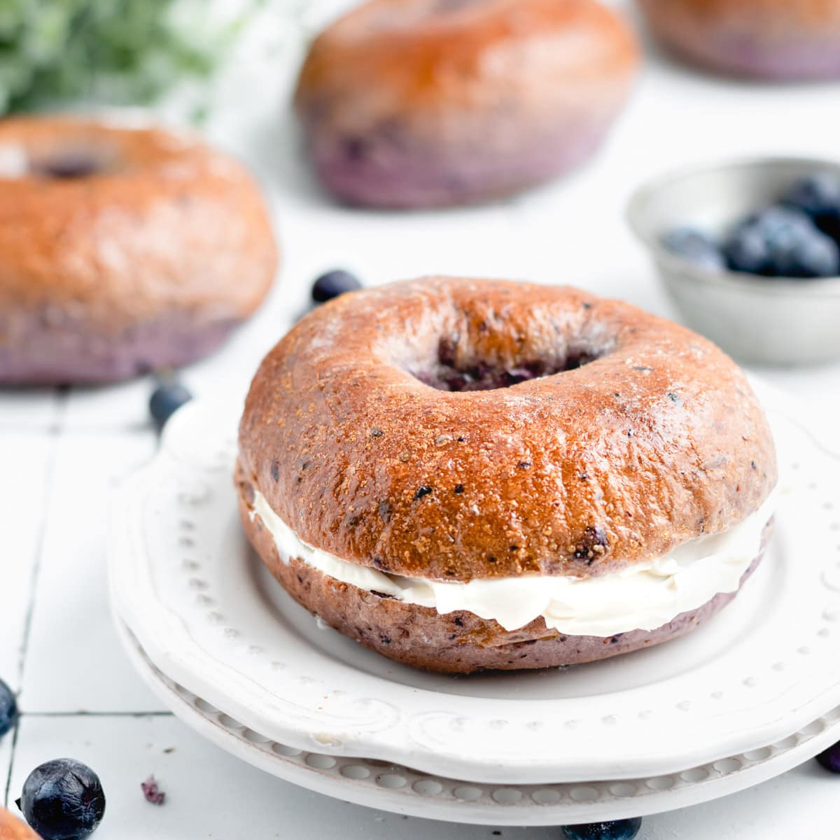 BAGEL BLUEBERRY JAMON DE PAVO Y QUESO MIX DE LECHU