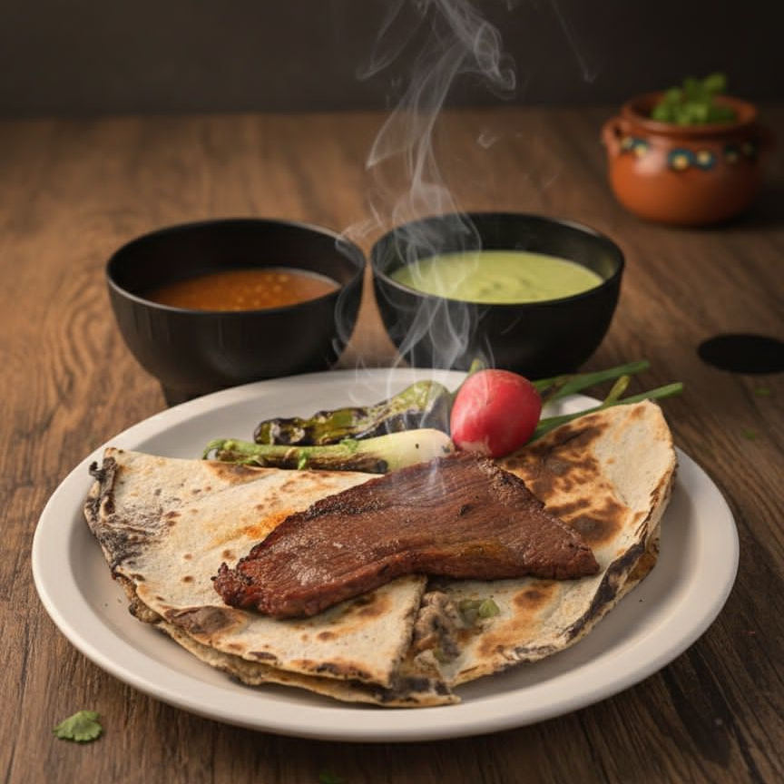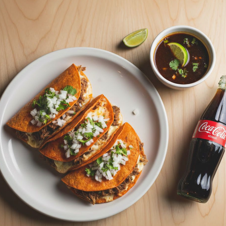 Doble tortilla de maíz 12 cm con cebollas cilantro salsa guacamole y limones