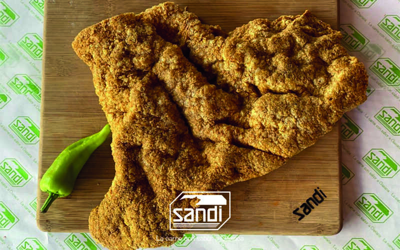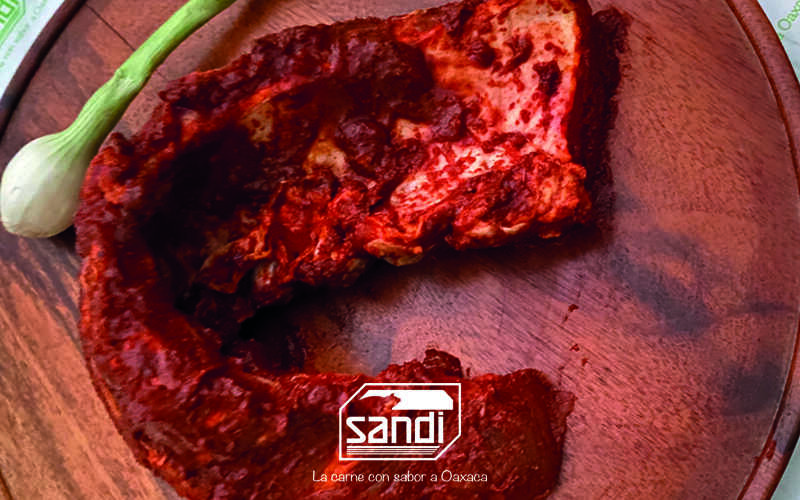 Cecina de cerdo en corte delgado, adobada con una pasta de especias y chile guajillo (500 g).