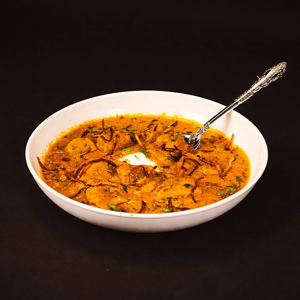 Incluye plato fuerte, Arroz Basmati y un Paan Naan (Classico o Ajo). Pollo, crema, yogurt, tomate , cebolla, almendra, nuez de india, gengibre y especias de india.