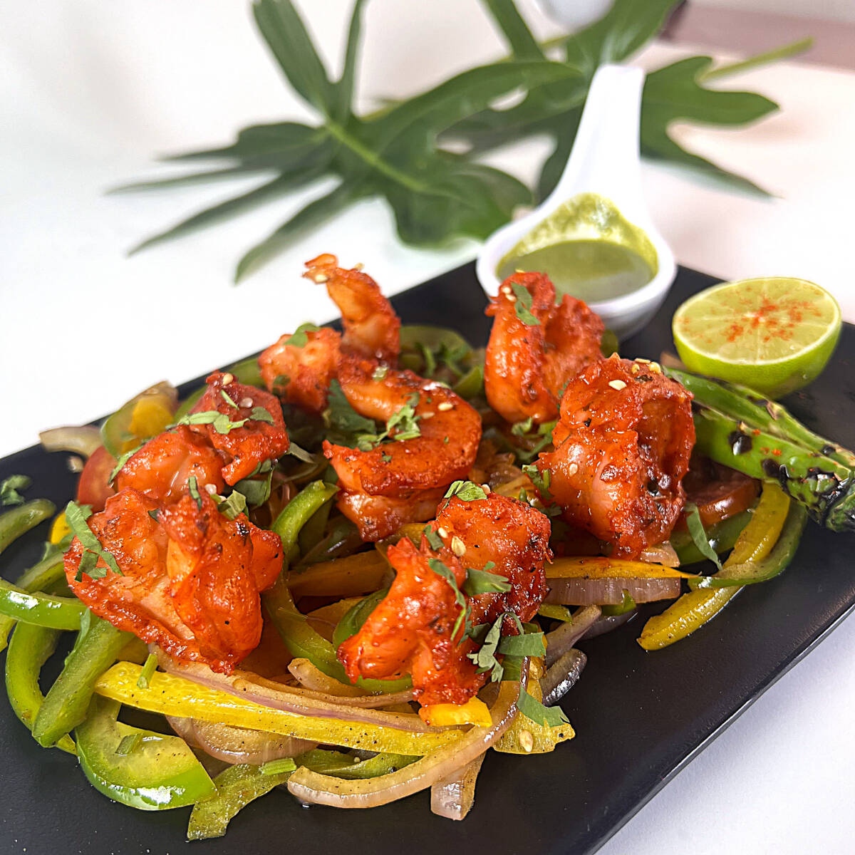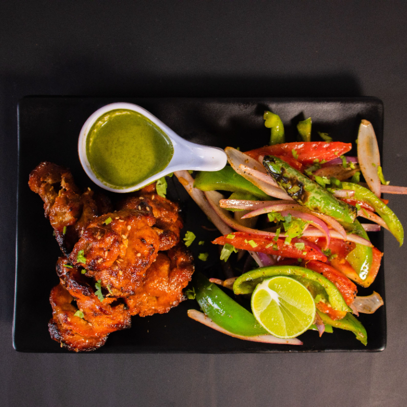 Pescado marinado en masala picante, asado en tandoor con sabor ahumado. / Spicy tandoori-marinated fish, charred & flavorful.