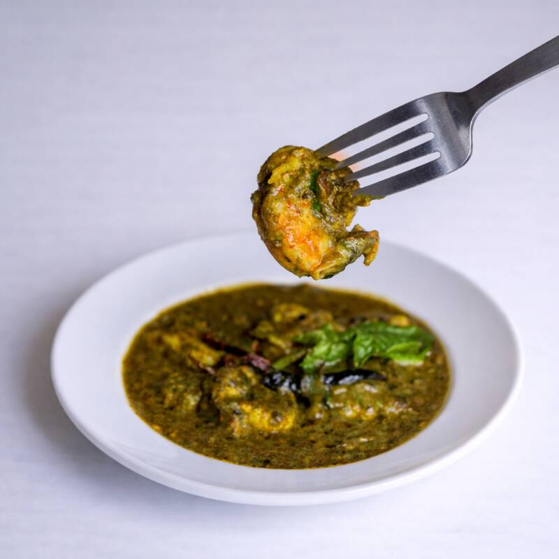 Incluye plato fuerte, Arroz Jasmin y un Paan Naan (Classico o Ajo). Espinaca, papa, crema, mantequilla, cebolla, tomate, especias de india, ajo, gengibre.
