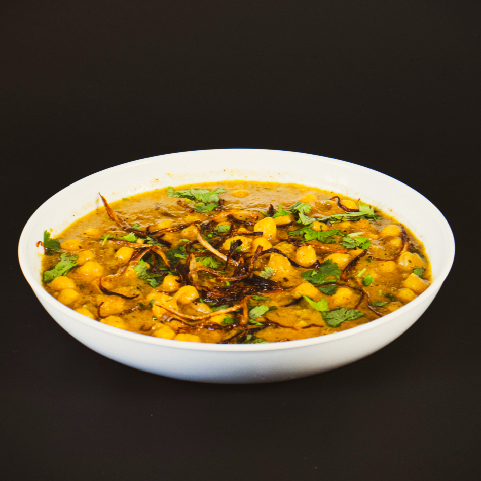Incluye plato fuerte, Arroz Jasmin y un Paan Naan (Classico o Ajo). Garbanzos, cebolla, tomate, especias de india, ajo, gengibre, cilantro.
