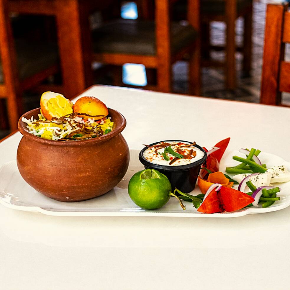 El biryani de huevo presenta una rica mezcla de especias aromáticas como comino, cilantro y canela, complementadas con cebollas caramelizadas, ajo y yogur tangy. arroz infusionado con azafrán, frutos secos y hierbas añaden capas de sabor, creando una fragante y sabrosa delicadeza del india.