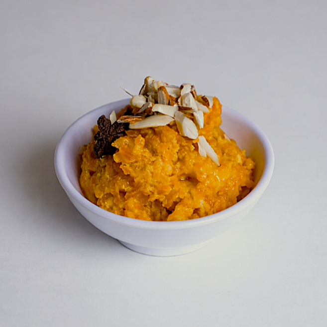 Pudín indio de zanahoria cocido lentamente con leche, ghee, azúcar y nueces.