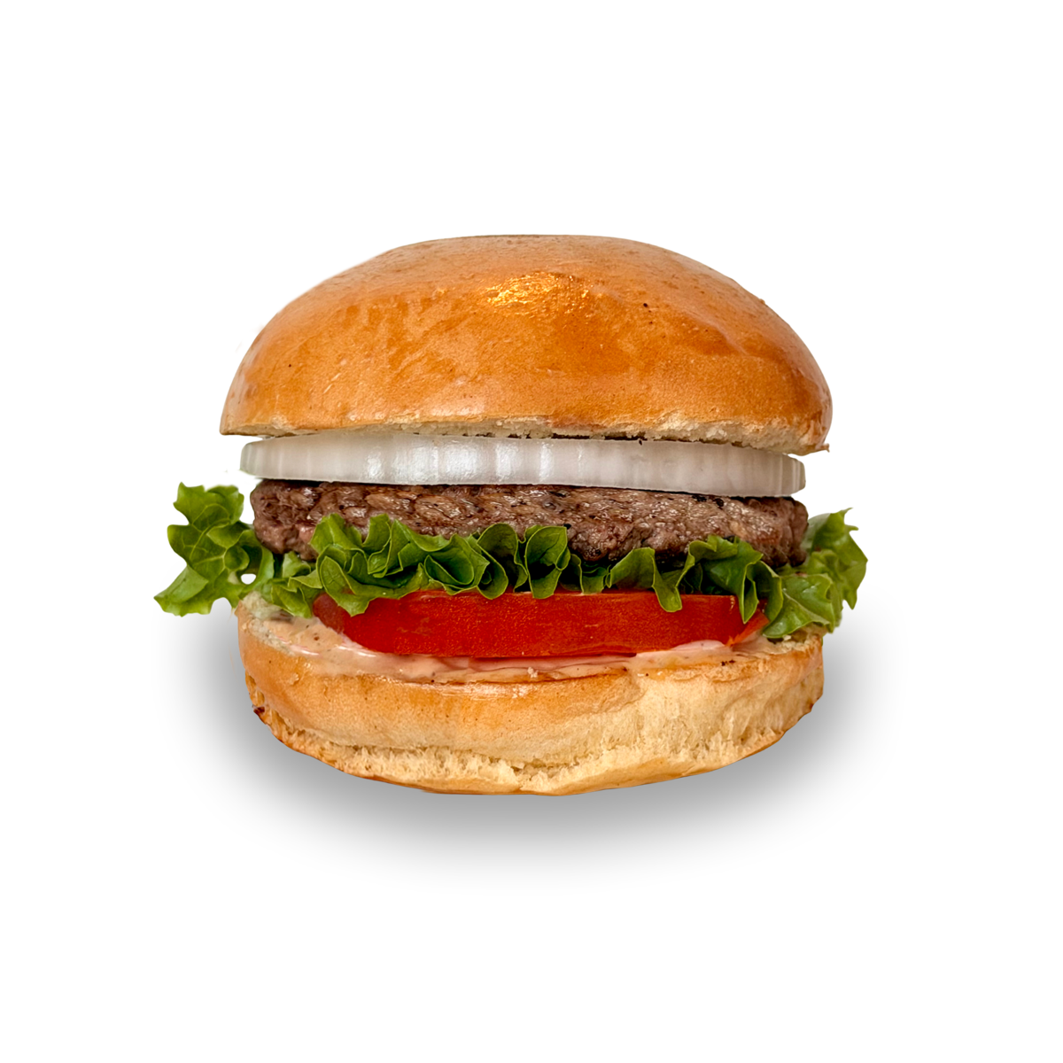 Cien por ciento carne angus, pan brioche, aderezo de la casa, jitomate, lechuga italiana, cebolla.
