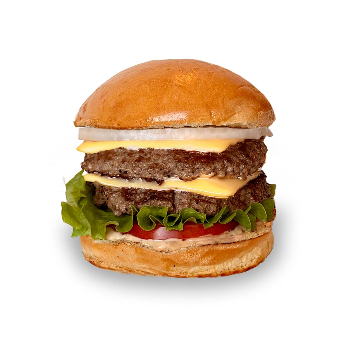 Cien porciento carne angus, doble queso americano, pan brioche,aderezo de la casa, jitomate, lechuga italiana, cebolla.