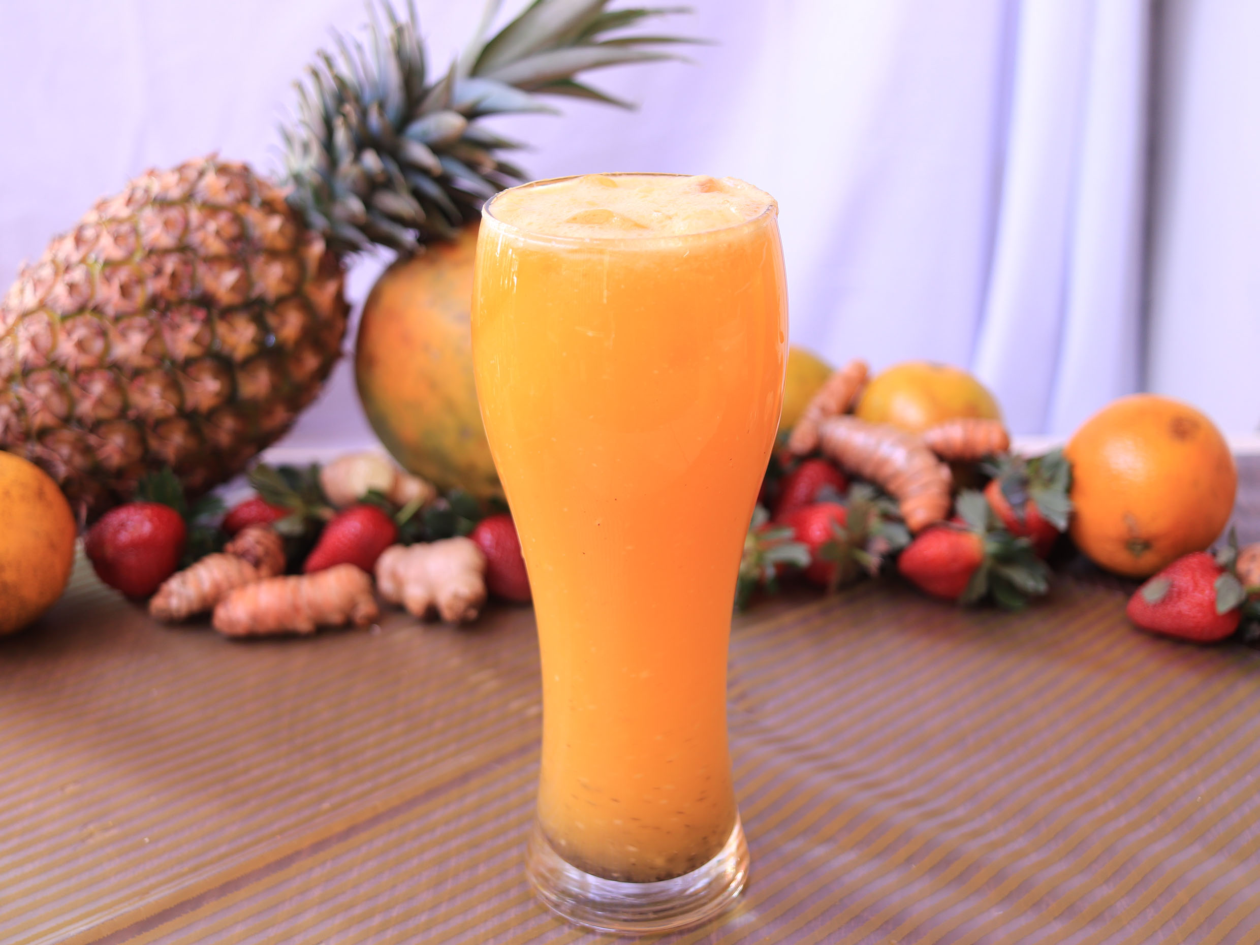 750 ml zanahoria, manzana, papaya, linaza y sábila.