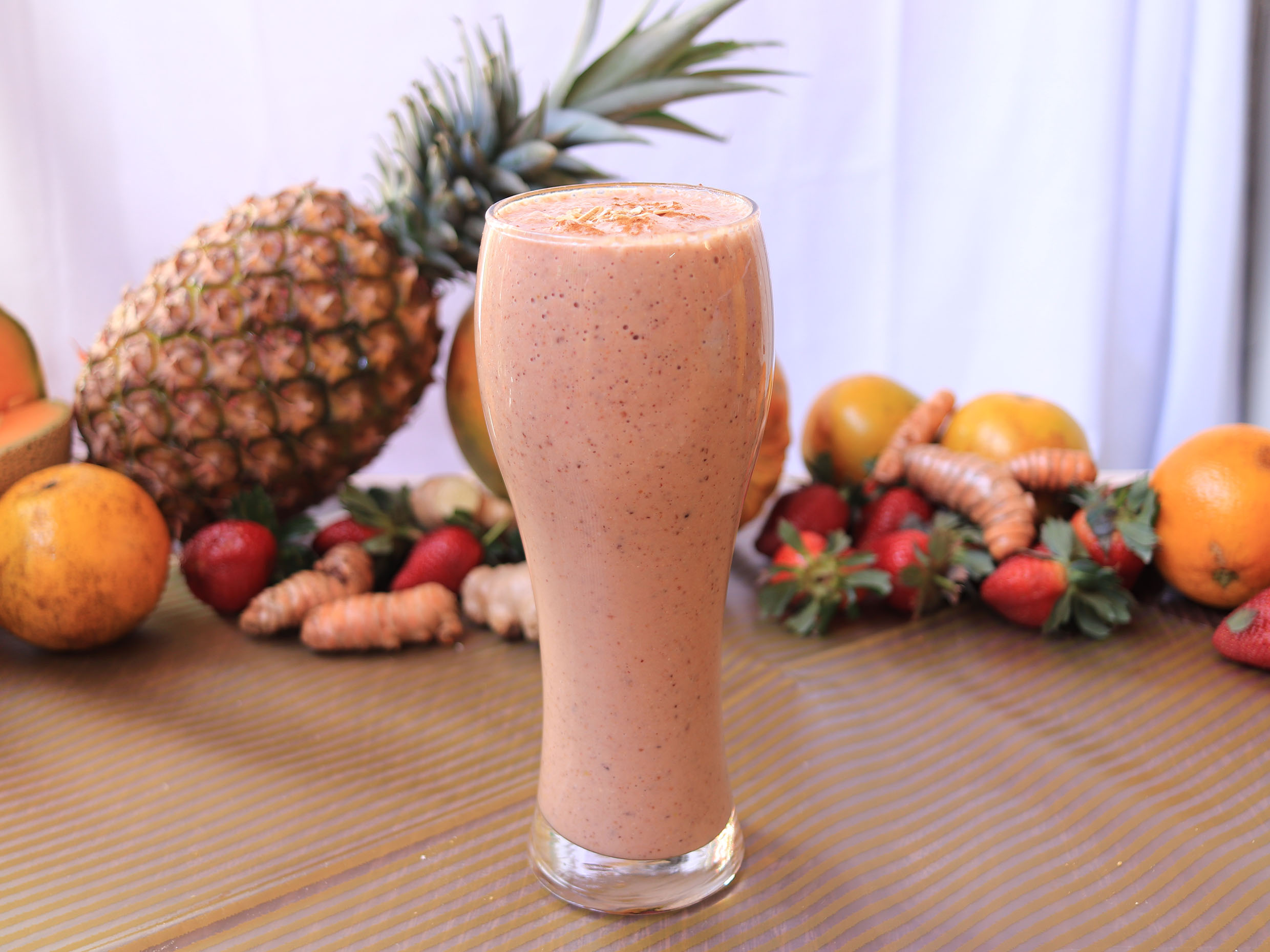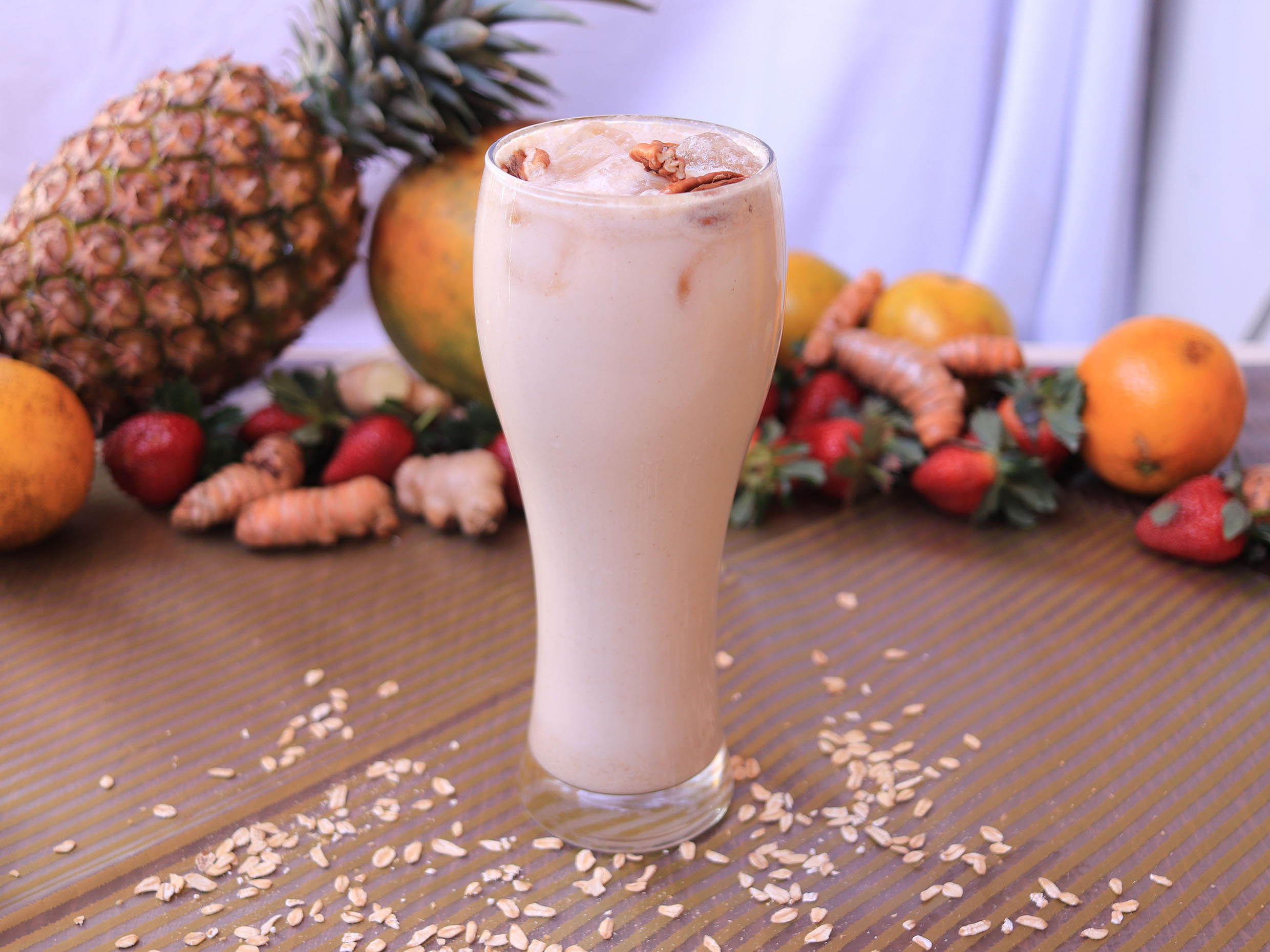 750 ml Zarzamora, piña, plátano, almendras, jugo naranja o leche.