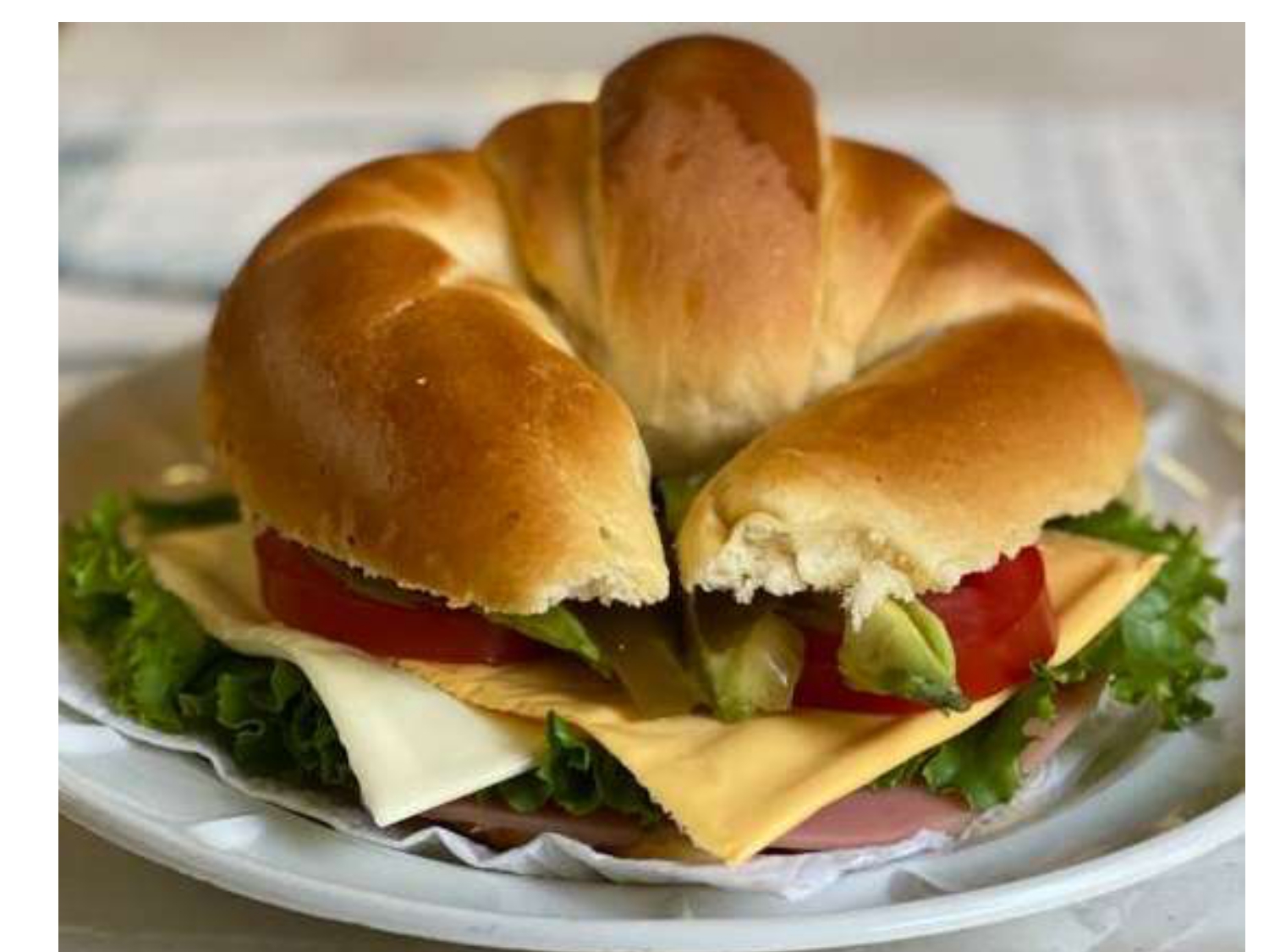 Pan baguette con queso panela, jamón de pavo, aguacate, tomate, jalapeños, mayonesa.