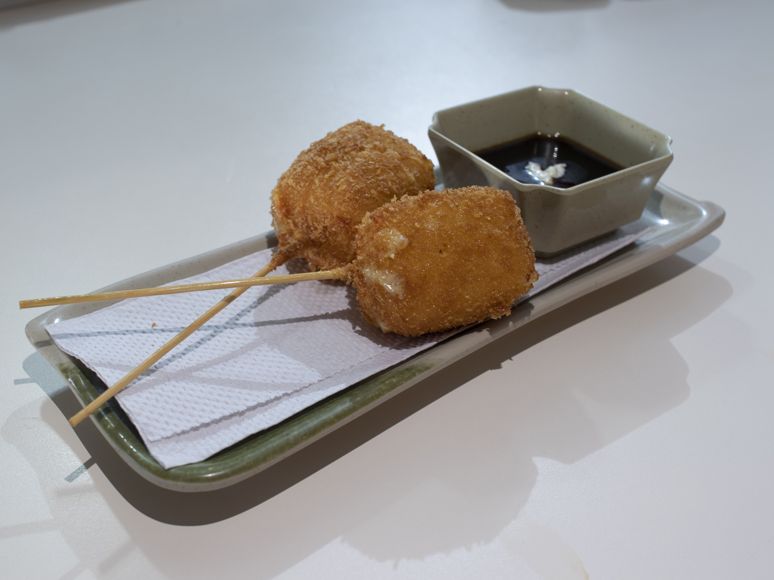 2 Piezas, brochetas asadas a la plancha y marinadas con salsa yakitori. Con camarón, cebolla y pimiento.