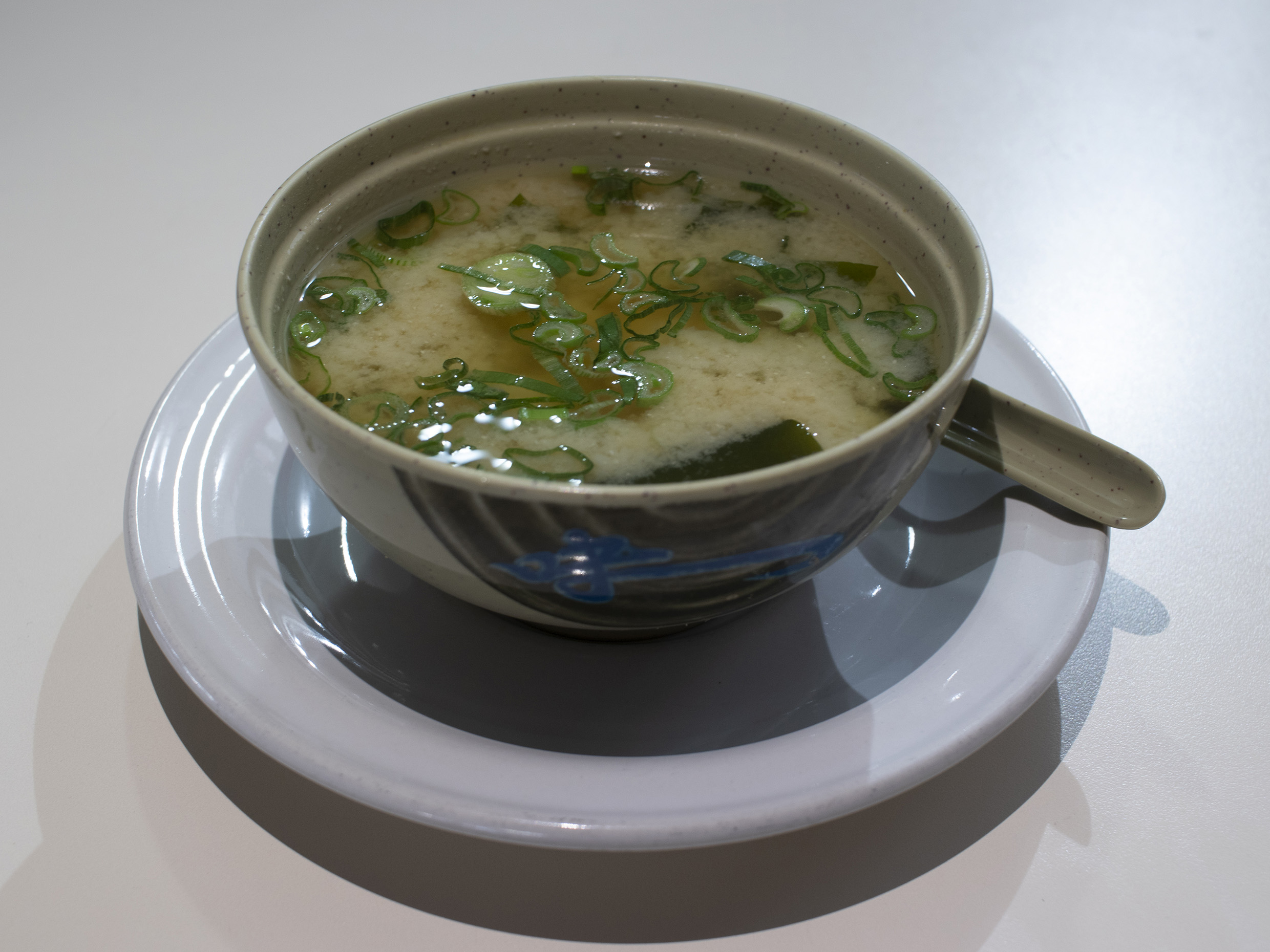Sopa japonesa hecha con miso (pasta a base de soya). Tofu, wakame y cebollín.