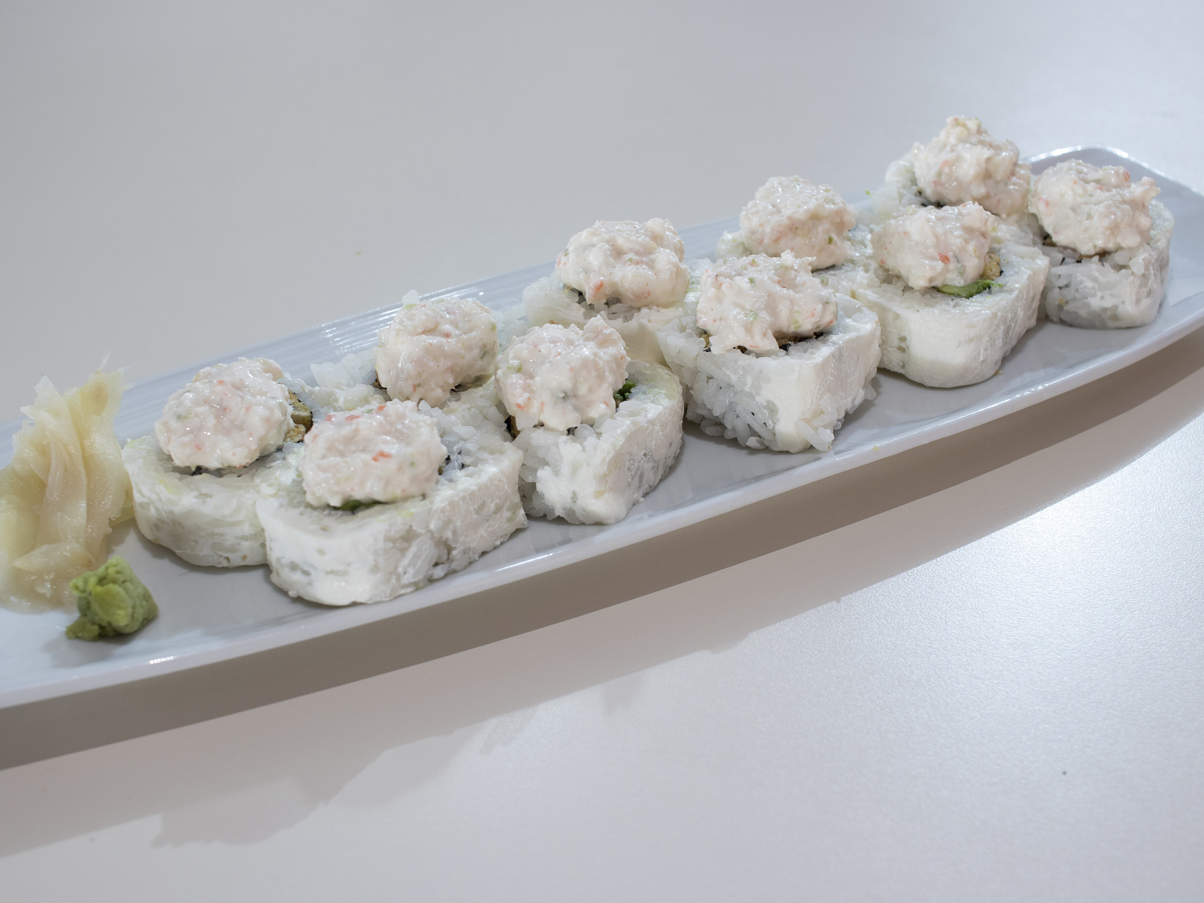 Por dentro: camarón, aguacate y queso crema; por fuera: kanikama.