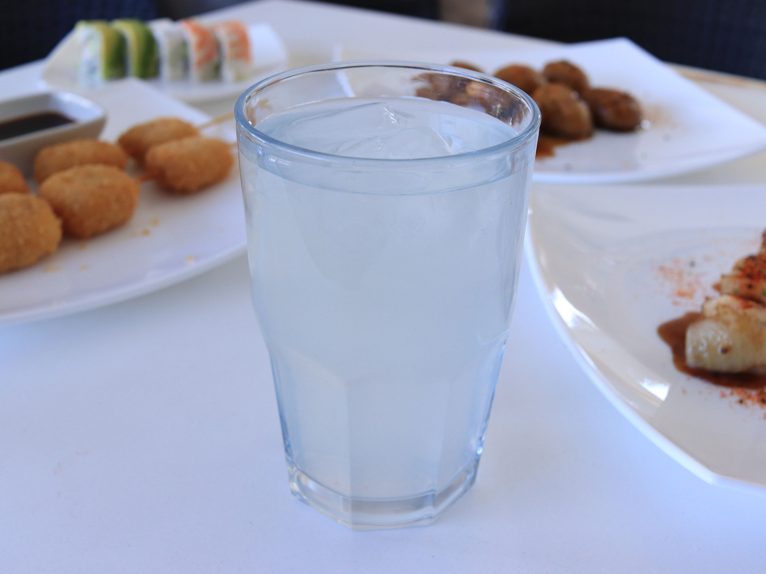 90 g de atún corte fino, servido con cebolla y chile serrano finamente picados, acompañado de salsa de rasurado.