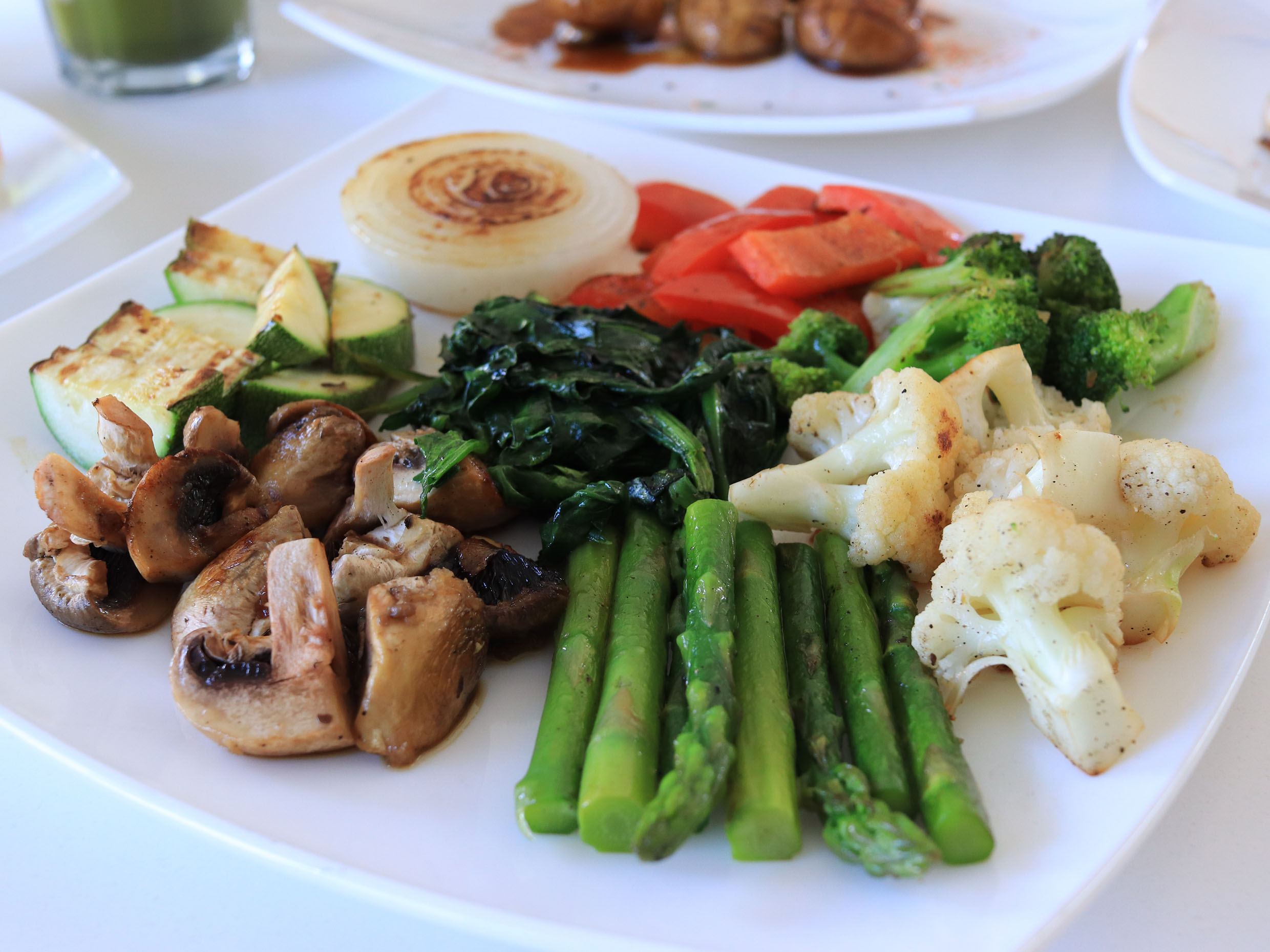 Combinación de lechugas, tomate cherry, espárrago, brócoli, champiñón y zanahoria con aderezo especial.