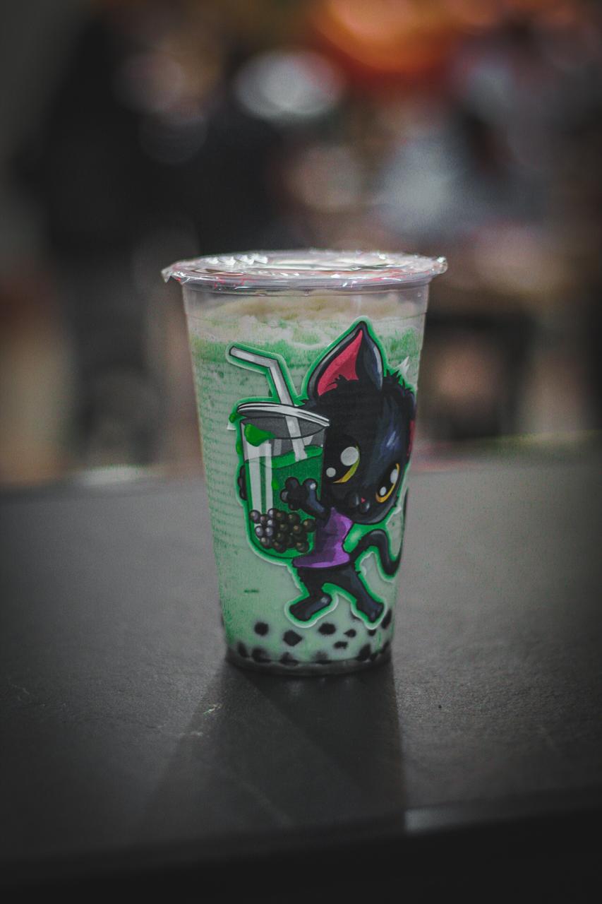 Bebida frappé a base de leche sabor matcha con perlas explosivas