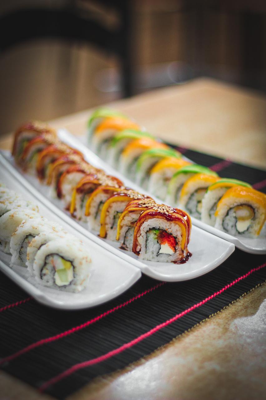 XD: salmón, camarón, queso crema. XF: surimi, aguacate, salsa de anguila.