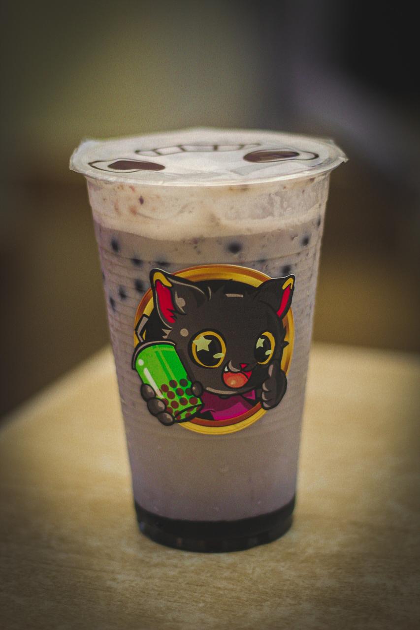 Bebida frappe a base de leche sabor Taro con perlas explosivas