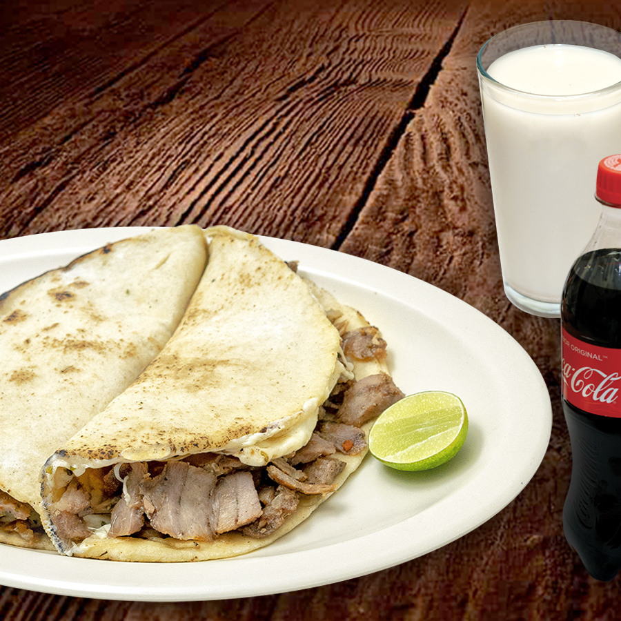 Tortilla de maíz y queso fundido. Incluye Salsa Árabe y Limones.