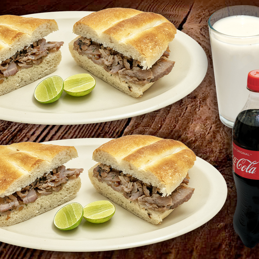 Carne Árabe, queso fundido y Pan telera. Incluye Salsa Árabe y Limones.
