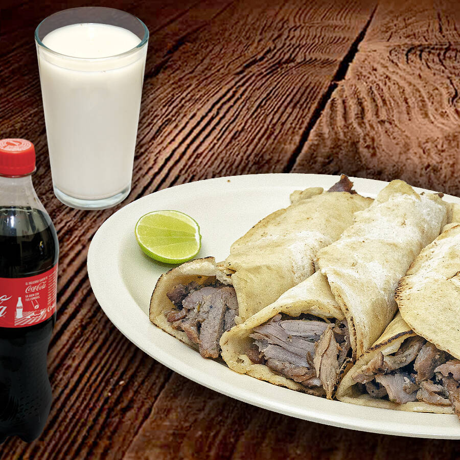 3 Arabitos (carne árabe con tortilla de harina) + 1 refresco o agua de su elección. Incluye Salsa Árabe y Limones.
