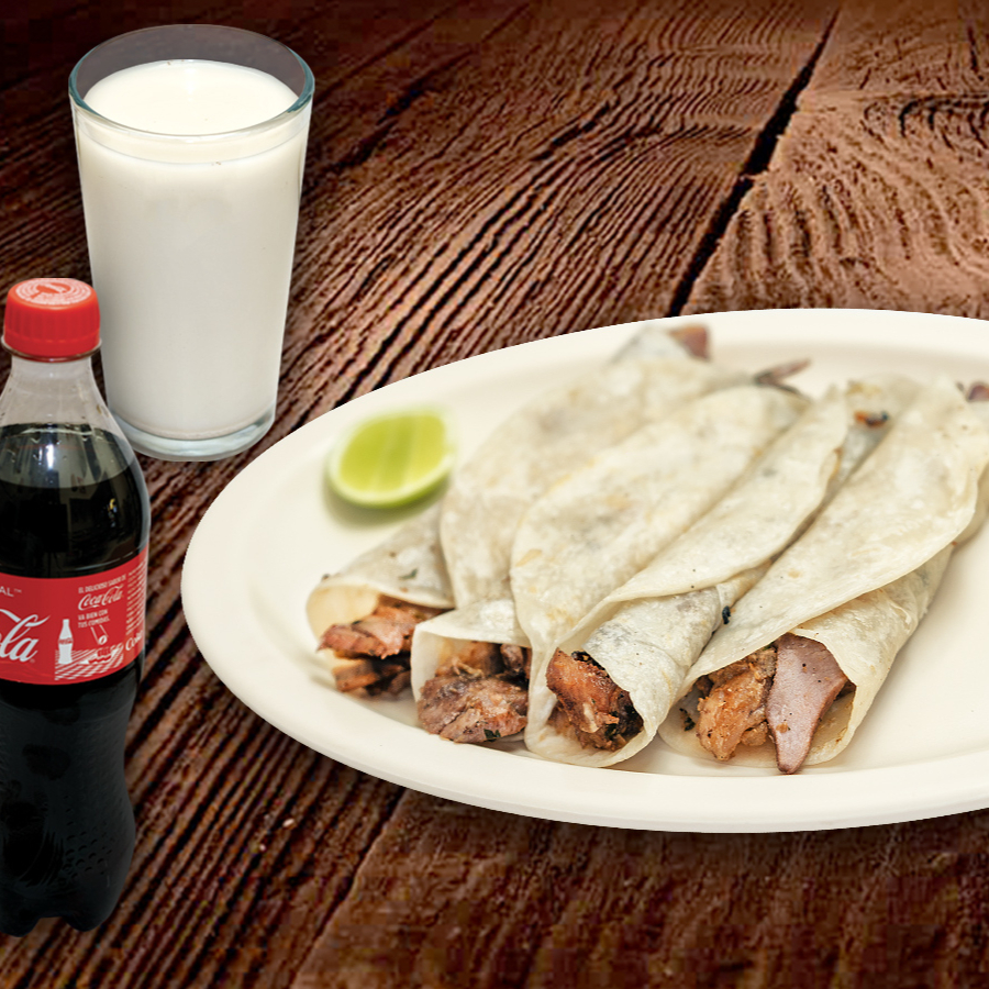 4 Arabitos (carne árabe con tortilla de harina) + 1 refresco o agua de su elección. Incluye Salsa Árabe y Limones.