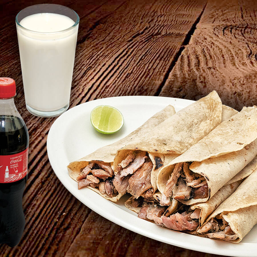 6 Tacos Orientales (carne árabe con tortilla de maíz) + 1 refresco o agua de su elección. Incluye Salsa Árabe y Limones.