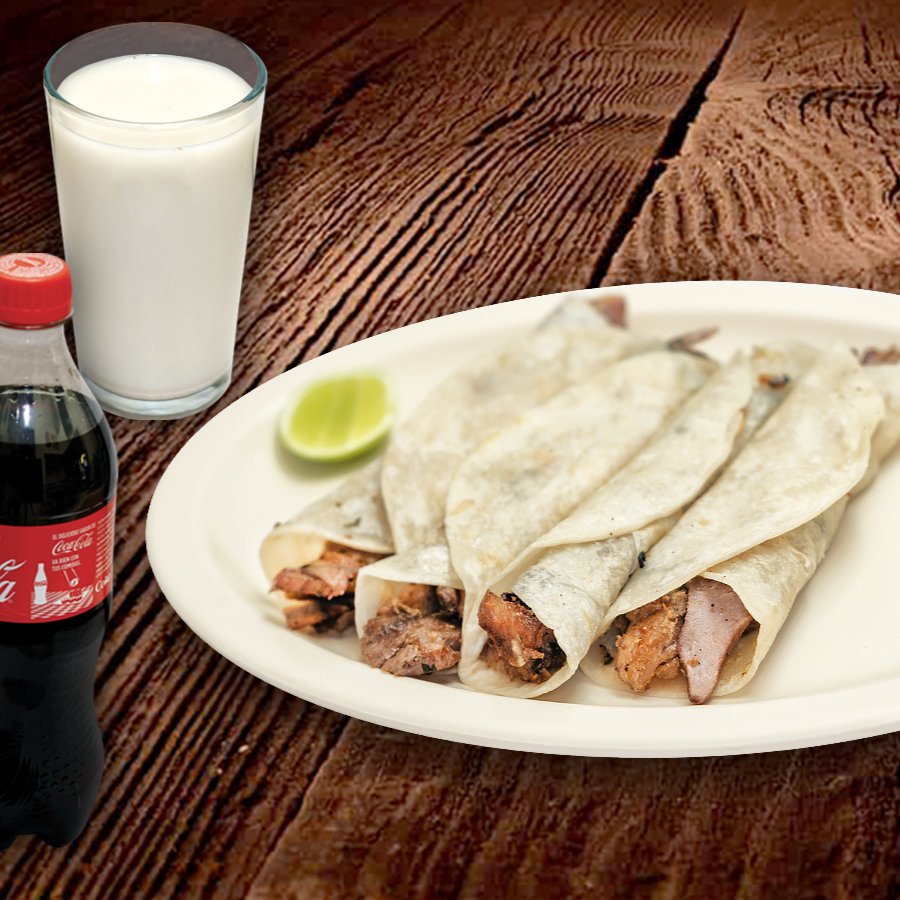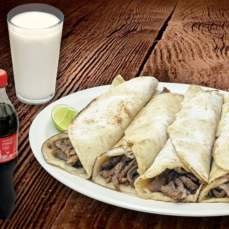 4 Arabitos (carne árabe con tortilla de harina) + 1 refresco o agua de su elección. Incluye Salsa Árabe y Limones.